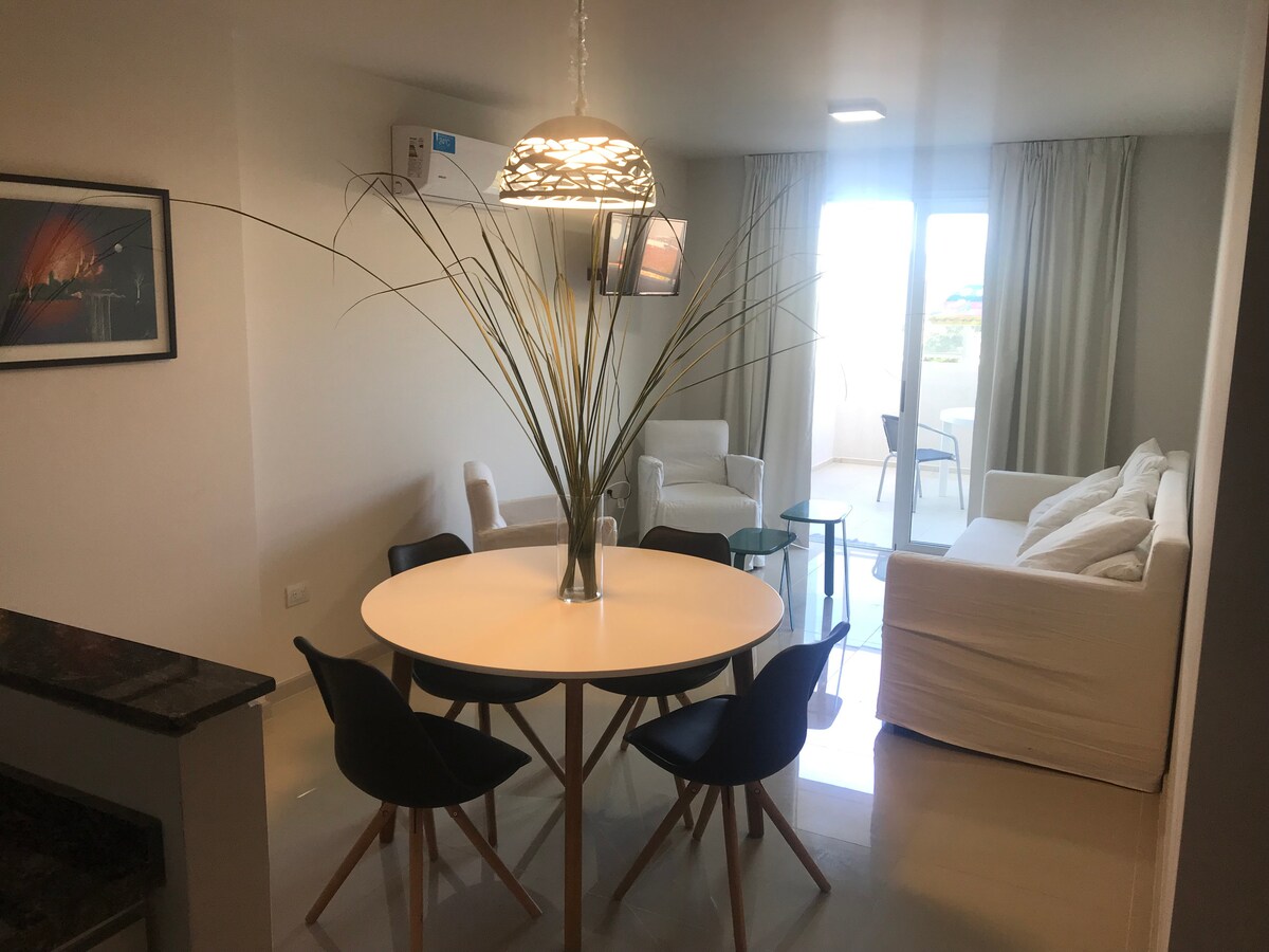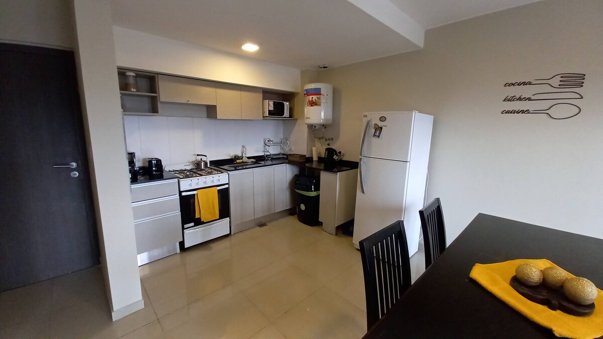 Căn hộ hiện đại ngay trung tâm Villa Carlos Paz, lý tưởng cho 4 người. Phòng ngủ có lò xo hộp và bàn làm việc, phòng khách với giường ghế bành, bếp được trang bị và máy giặt. Wifi, điều hòa không khí và bộ tản nhiệt để bạn cảm thấy thoải mái trong suốt cả năm. Đối diện phòng tập thể dục cao cấp và khoảng cách đi bộ từ người đi bộ, nhà hàng và các điểm tham quan du lịch. Vị trí lý tưởng để đi bộ.