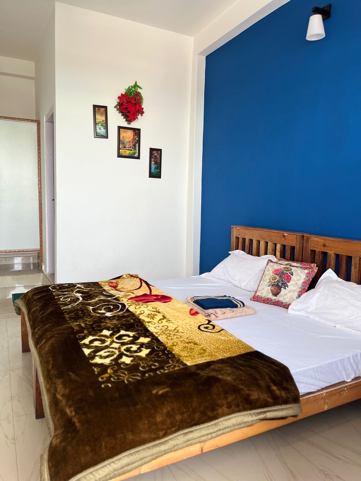 NO LOCAL IDs ARE ALLOWED. NO EXCEPTIONS PLEASE. This Room is on the 1st floor of house. Comfortable for 2 adult guests. Room has: King sized bed with medicated mattresses; A study table with chair; Steel wardrobe and 2 seat sofa. Split AC unit is fitted (charged Rs.250 for 10 hours of night). Bathroom is private but not attached. Hot water through Water geyser. Guests can enjoy shared balcony and airy terrace at the top. Note: All meals are charged extra from room's booking price.