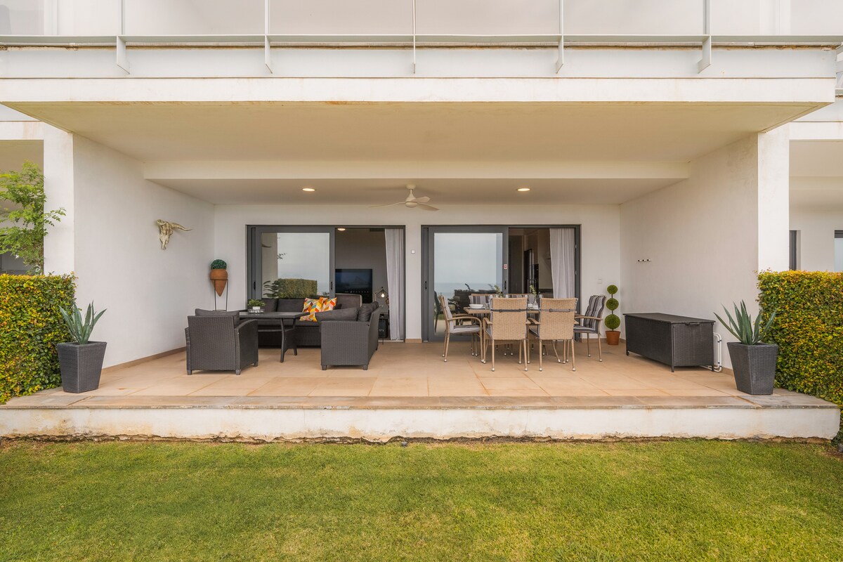 Nhà phố sang trọng gần Sotogrande, với tầm nhìn không bị cản trở ra bờ biển, Gibraltar và Châu Phi. Hoàn hảo để thư giãn trong môi trường yên tĩnh với tầm nhìn tuyệt vời từ sân thượng và khu vườn riêng với đồ nội thất ăn uống và sân hiên, và từ sân thượng phòng ngủ chính. 10 phút đi bộ đến bãi biển "Punta Chullera" và "Playa de los Toros" đều là những điểm đến tuyệt vời. Hồ bơi với tầm nhìn toàn cảnh bờ biển và được bao quanh bởi các khu vườn, TV và internet cáp quang tốc độ cao.