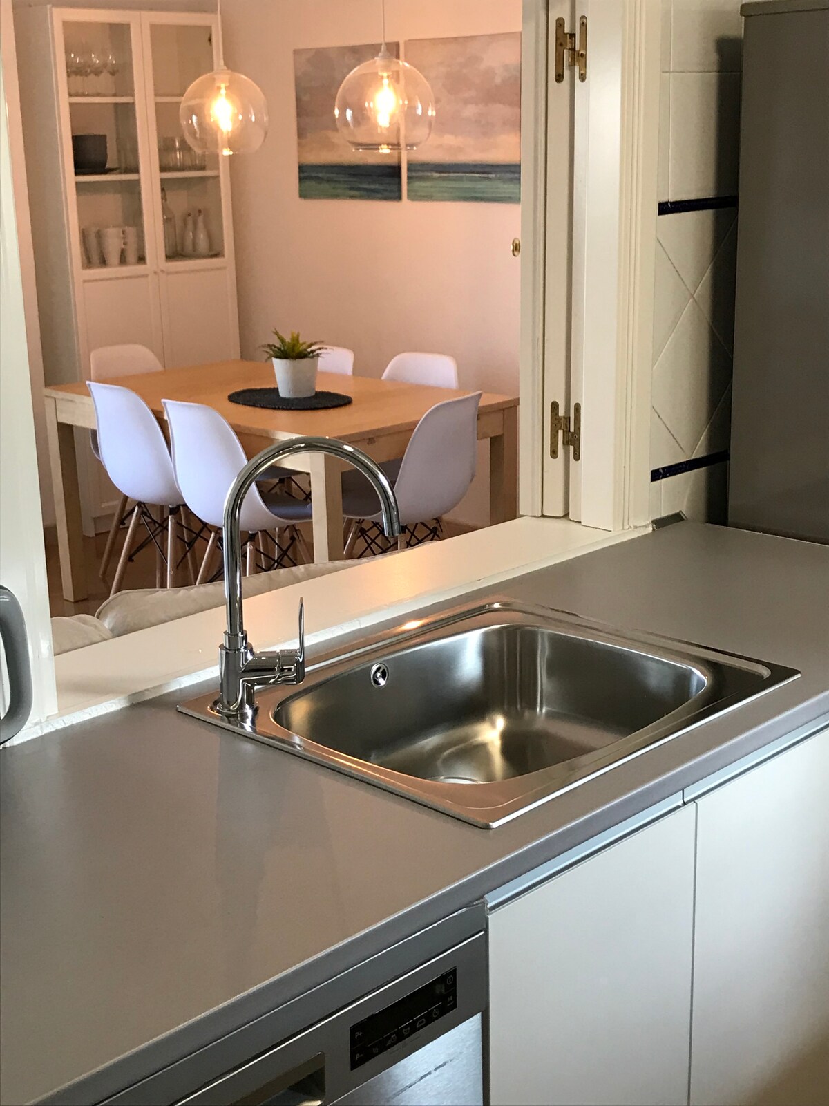 Căn hộ mới được cải tạo đẹp mắt, sáng sủa và rất ấm cúng, nằm trên bãi biển. Nó có một phòng ngủ, một phòng tắm, một phòng khách - phòng ăn, một nhà bếp không gian mở được trang bị đầy đủ tiện nghi, một nhà vệ sinh, một sân thượng lớn với tầm nhìn ra biển và một chỗ đỗ xe. Đó là một nơi lý tưởng để thư giãn hoặc thậm chí làm việc, vì nó bao gồm hai bàn làm việc. Khu phức hợp có các khu vực chung, Hồ bơi (từ ngày 15 tháng 6 đến ngày 15 tháng 9), sân chơi và sân hiên. Nó nằm ngay cạnh một trường dạy chèo thuyền và gần bến du thuyền và sân golf.