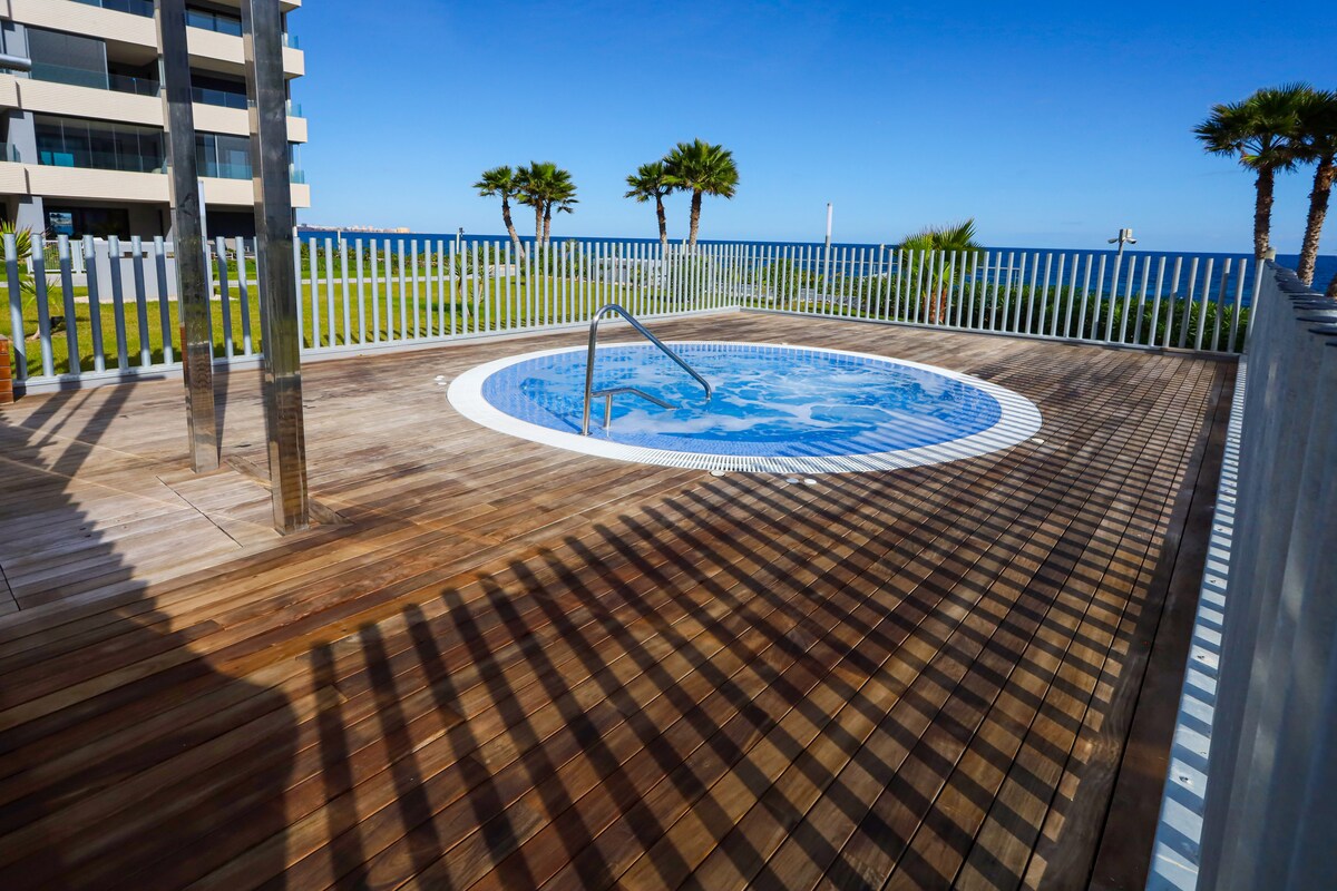 Căn hộ hiện đại với sân thượng riêng lớn trên tầng thượng với bể sục jacuzzi và vòi sen ngoài trời! Hướng biển, điều hòa không khí, 2 phòng tắm, nhà bếp được trang bị đầy đủ tiện nghi, Internet cáp quang, TV thông minh quốc tế, máy giặt, sân bi sắt, hai hồ bơi, sân chơi trẻ em và gara. Bãi biển 7 phút Siêu thị cách 300 mét Nhà hàng gần nhất 50 mét Dải nhà hàng Punta Prima 800 mét Torrevieja 5 phút Trung tâm mua sắm La Zenia 10 phút Nhận phòng miễn phí 4–11 giờ tối | trả phòng miễn phí 7–10 giờ sáng | nếu không +35 EUR