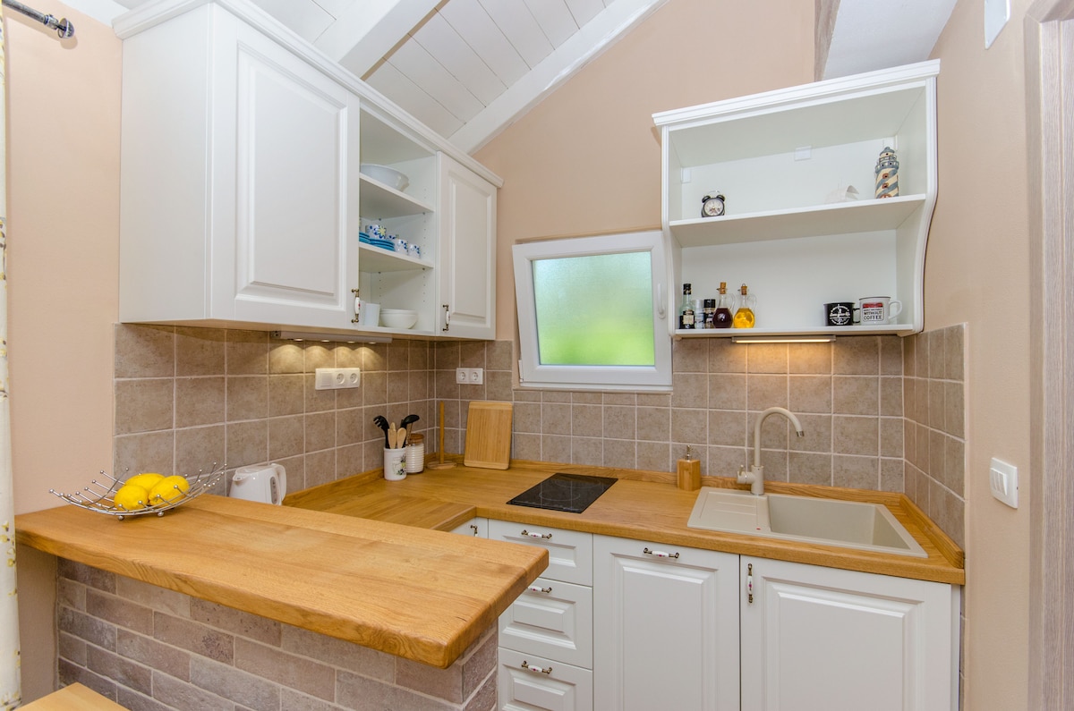 Nhà nghỉ thôn dã nhỏ của chúng tôi tọa lạc trong một khu rừng ô liu ở Ivan Dolac. Đó là một căn hộ studio nhỏ ấm cúng cho hai người tìm kiếm sự yên bình và yên tĩnh. Bãi biển cách đó 200 m và các quán bar, nhà hàng và chợ cách ngôi nhà nhỏ của chúng tôi 500 m.