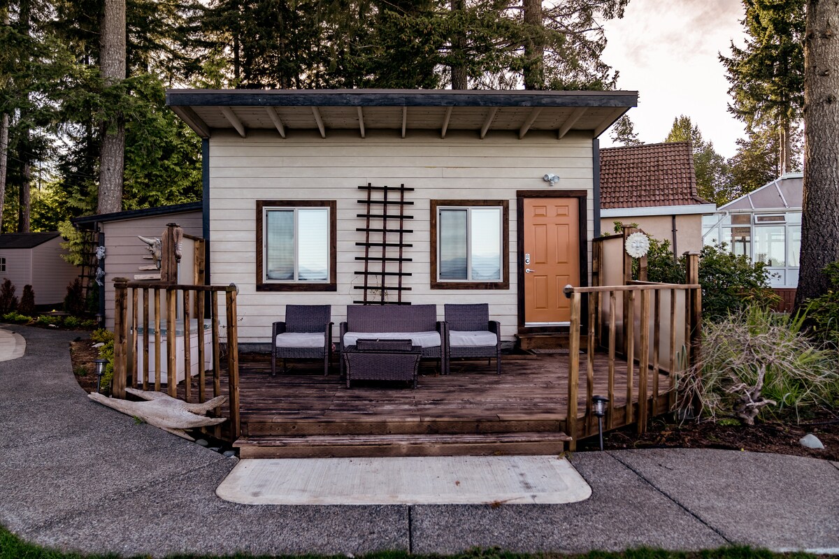 Hãy đơn giản hóa vấn đề tại địa điểm yên bình và nằm ở trung tâm này. Đây là điểm khởi đầu tuyệt vời cho những ai muốn khám phá trung tâm, phía tây và Đảo Bắc Vancouver. Chúng tôi cách Sunny Beach Road, một địa điểm bãi biển yêu thích của người dân địa phương vài phút đi bộ. Một quán cà phê, quán rượu, cửa hàng kem và nhiều con đường mòn tự nhiên đều chỉ cách đó một đoạn đi bộ ngắn. Nhà nghỉ thôn dã được trang bị giường cỡ queen. Giường cũi gấp có sẵn cho khách thứ 3.