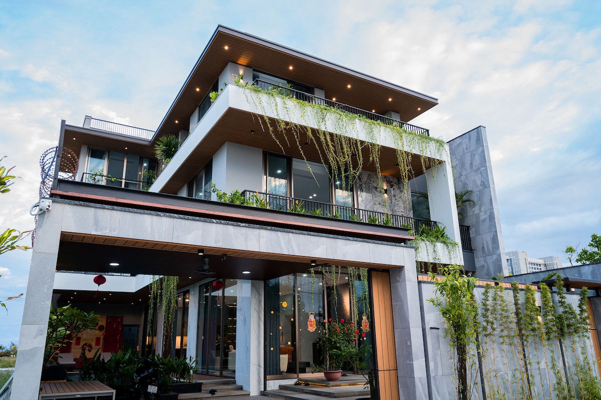 Biệt thự VÀNG - 1 phút đến bãi biển Hà Mỹ với điều hòa không khí/bể bơi
