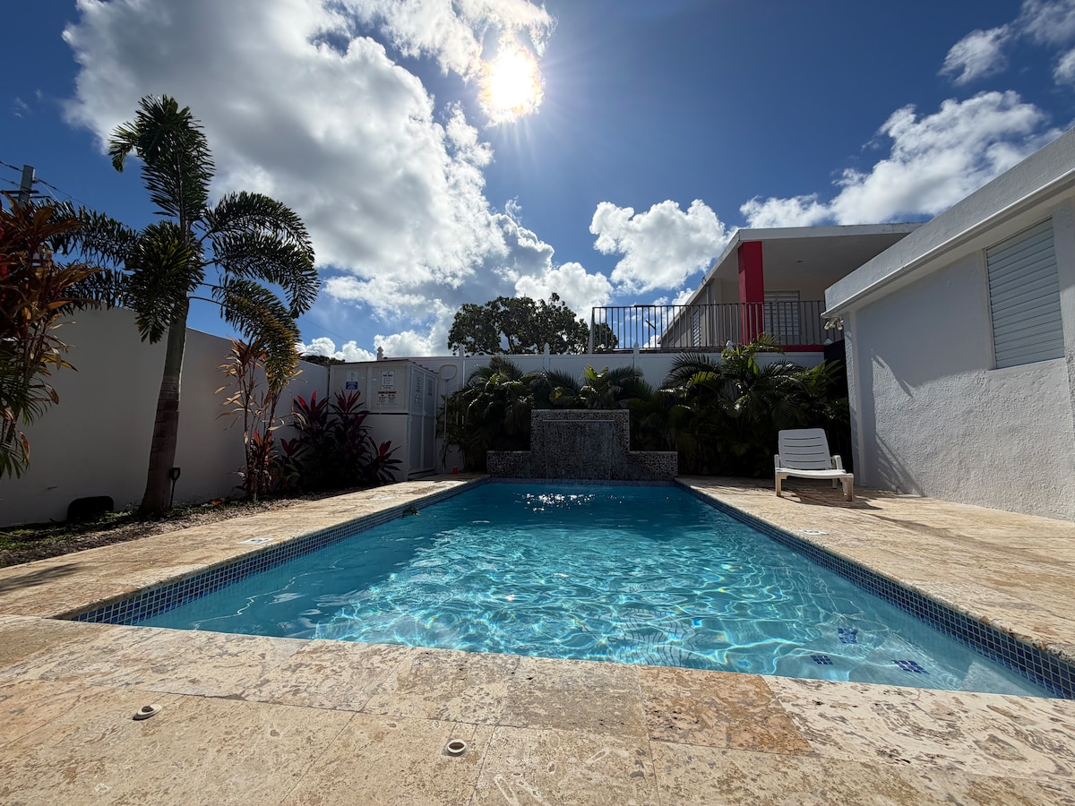 Fully remodeled 3BR, 2BA home with private pool, outdoor shower and stylish patio. Enjoy AC throughout, fast Wi-Fi, free parking and solar power with backup. Relax in the gazebo, lounge by the pool, or explore nearby beaches and shops—perfect for a modern, worry-free stay in Puerto Rico.