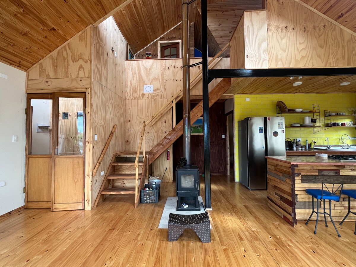 Hermosa cabaña en medio de Chiloé rural. La cabaña está situada específicamente en Teguel Bajo, una pequeña comunidad a 4,5 km de la ciudad de Dalcahue. Se trata de un lugar en medio del campo, rodeado de bosques nativos, a pocos metros del Humedal de Teguel y con una preciosa vista al canal Dalcahue. En el primer piso hay un amplio espacio en donde está la cocina, living, comedor y el hot tube. En el altillo está la habitación principal con una cama de 2 plazas.