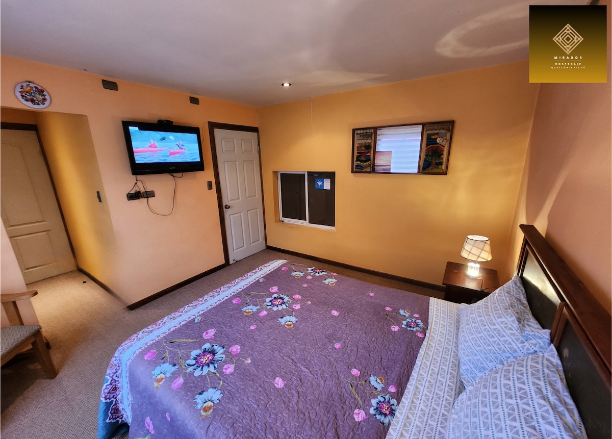 Desconecta de tus preocupaciones en nuestro turismo rural. Contamos con amplia cabaña con vista al mar en un lugar lleno de tranquilidad. Estamos a solo 30 min. de la ciudad de Quellón y con todas las comodidades que necesitas para una grata estadía ya que contamos con Wifi Starlink para teletrabajar y lavadora. Servicios con costo extra (de pago no incluidos con el arriendo de cabaña): Sendero de bosque nativo, tinajas de agua caliente, paseo en bote para avistamiento de pingüinos magallánicos.