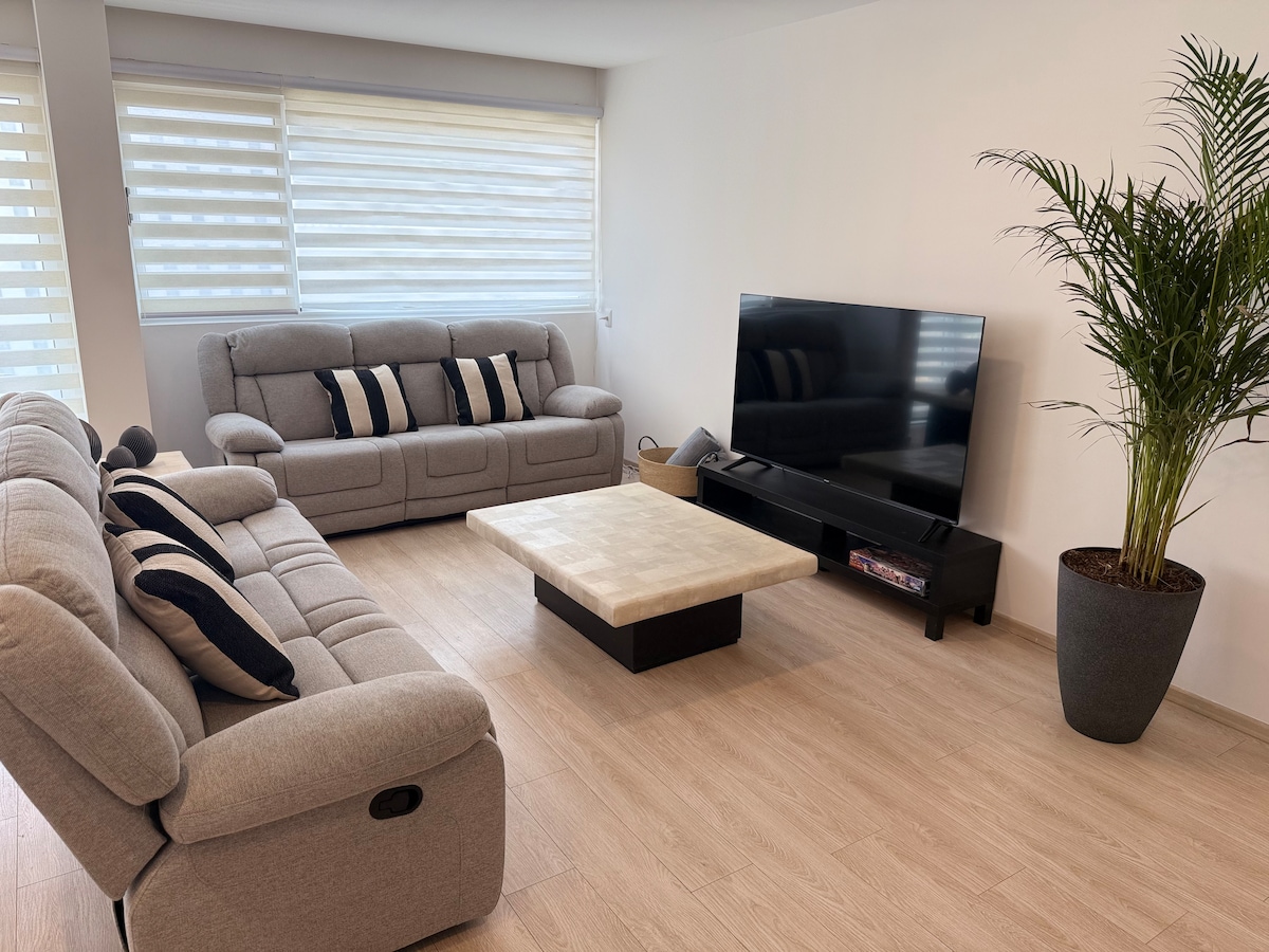 Chào mừng bạn đến với Life Juriquilla, một không gian hiện đại ngay trung tâm Valle de Juriquilla. Căn hộ A801 có 2 phòng ngủ cộng với khu vực TV, 2,5 phòng tắm, bếp đầy đủ tiện nghi, khu vực sinh hoạt - ăn uống rộng rãi và khu vực giặt ủi. Căn hộ này hoàn hảo cho các cặp đôi, gia đình nhỏ hoặc những người đi công tác. Tận hưởng Wi-Fi nhanh, hồ bơi, phòng tập thể dục và khu vực cây xanh, tất cả đều ở vị trí đắc địa, dễ dàng đến các trung tâm mua sắm, bệnh viện, ngành công nghiệp và đường chính.