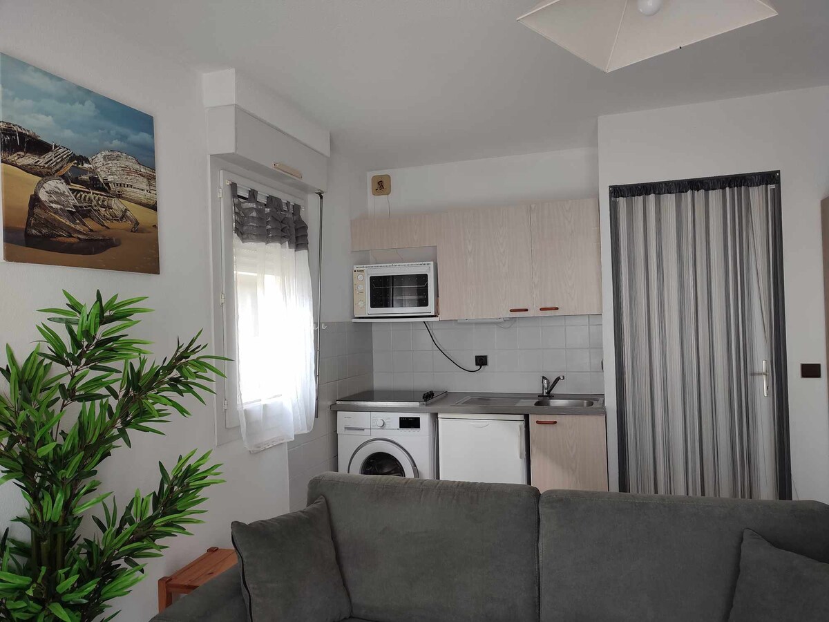 studio 25 m² được cải tạo hoàn toàn nhìn ra biển trên tầng vườn và sân thượng khép kín. Giống như một nhà bếp lớn: được trang bị và trang bị: máy rửa chén, lò nướng truyền thống, lò vi sóng, 2 đĩa và tủ lạnh. Để ngủ, một chiếc ghế sofa nệm tốc độ cao 140 x 190 của Ý dày 18 cm. Nơi cư trú với hồ bơi nước nóng mở cửa từ 01/06 đến 15/09 studio cách bãi biển 400 m và bến du thuyền Guidel cách Lorient và Quimperlé 15 phút lý tưởng để ghé thăm 2 phòng ban