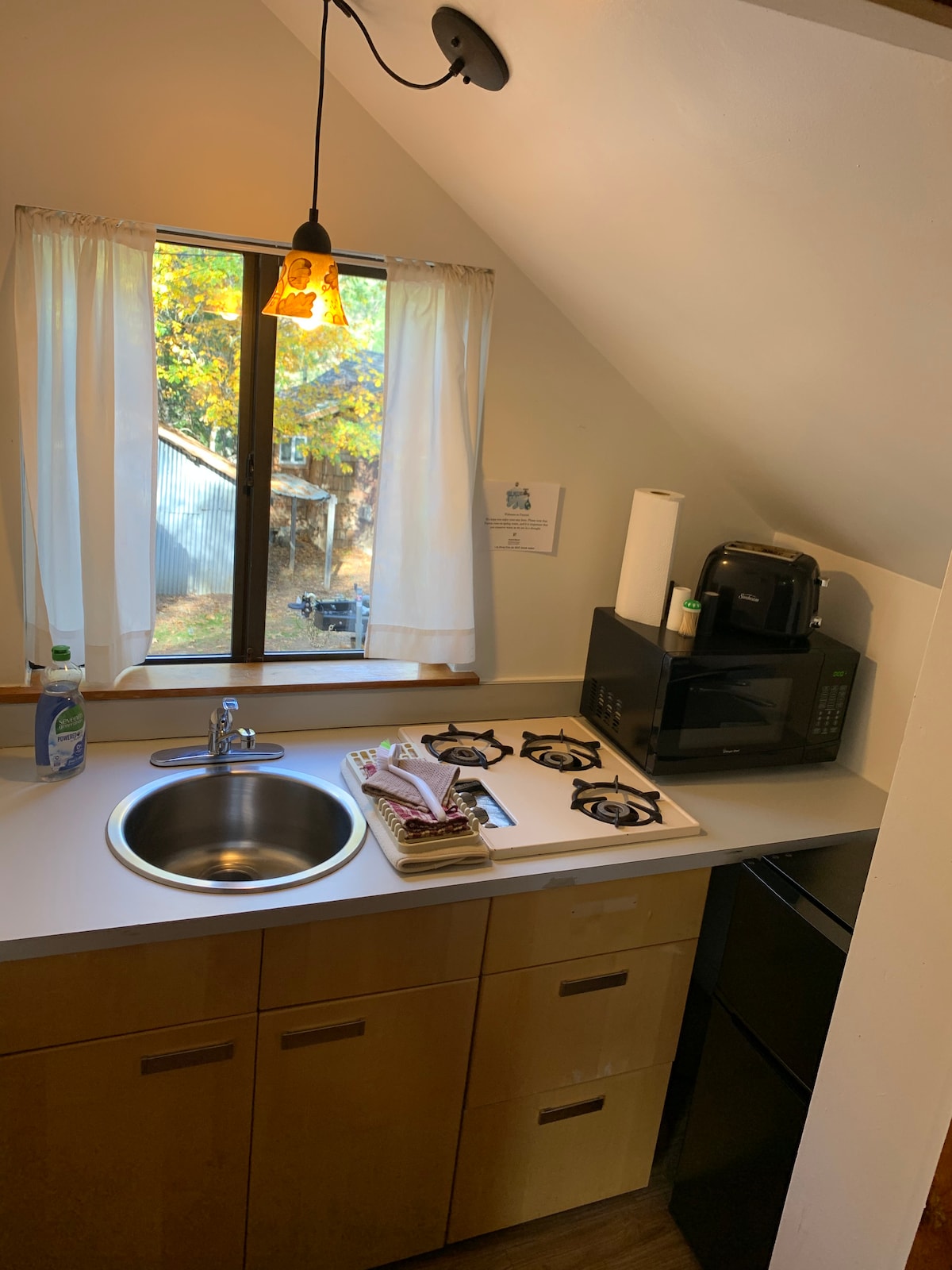 Walking distance to everything! Enjoy biking, rafting, birding and hiking adventures from the centrally located converted historic motor inn, Rainbow's End. Next to Patties Morning Thunder, Quincy's most popular breakfast restaurant; The Grove Makers Space; blocks from the cinema, Quintopia Brewery; walk to the museum, co-op, coffee, pizza, wine bar, shopping, cinema and pond. Two mile bike ride to the world famous High Sierra Music Festival in July and top notch mountain biking trails.