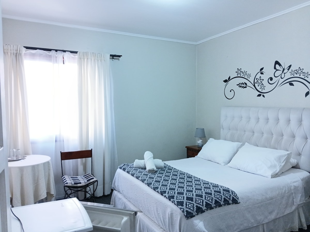 Khám phá phòng đôi thoải mái của chúng tôi ở trung tâm Viña del Mar! Phòng của chúng tôi có giường cỡ king thoải mái, lý tưởng để nghỉ ngơi sau khi khám phá thành phố. Tận hưởng phòng tắm riêng, Wi-Fi miễn phí và TV để bạn giải trí. Tọa lạc tại 5 norte 655, Viña del mar, bạn sẽ chỉ cách những bãi biển, nhà hàng, quán cà phê và điểm tham quan du lịch tuyệt vời nhất vài bước chân. Đặt ngay!