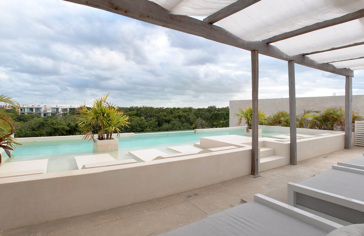 Căn hộ hiện đại, chỉ dành cho người lớn trong khu phố yên tĩnh chỉ cách trung tâm thành phố vài phút. Khách yêu thích khung cảnh yên bình và thường xuyên trở lại hồ bơi trên tầng thượng, khu vực BBQ và dịch vụ dọn phòng hàng ngày. Đi xe đạp miễn phí trên bờ biển hoặc khám phá các cửa hàng và quán cà phê gần đó. Bể ✔ bơi trên tầng thượng Wifi ✔ Starlink Xe đạp ✔ miễn phí Bếp ✔ đầy đủ Bảo mật ✔ ban đêm ➕ 7-Eleven chỉ cách một dãy nhà Tiền thưởng: Giảm 10% cho lặn biển với Scuba Life Cozumel được xếp hạng hàng đầu. Chỉ từ 12tuổitrở lên.