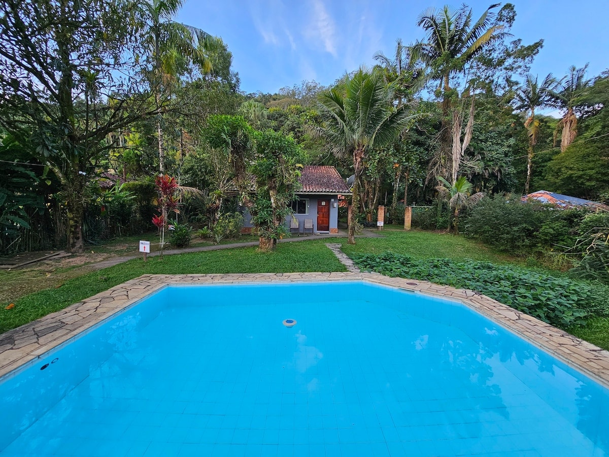 Refuge das Juçaras là một ngôi nhà rừng điển hình, mộc mạc, sạch sẽ, ấm cúng và được bao quanh bởi những viên đá khổng lồ làm cho địa hình trở nên mê hoặc. Ngôi nhà nằm trong Khu vực bảo vệ môi trường, hòa mình vào thiên nhiên, bao gồm cây cọ juçara, dương xỉ và các vẻ đẹp khác của Rừng Đại Tây Dương. Ở dưới cùng của vùng đất đi qua sông Alambari tinh thể, ngăn cách vùng đất của chúng tôi với Vườn quốc gia Itatiaia. Ngôi nhà nằm trong một khu vực gần các giếng ngọc lục bảo của Serrinha. Đây là một nơi đầy mê hoặc!