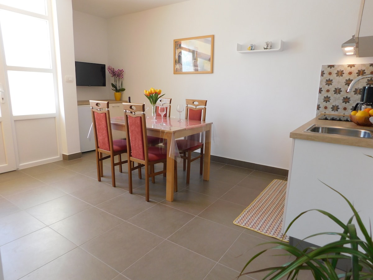 Căn hộ Karla nằm ở tầng 2 của một ngôi nhà gia đình với 2 căn hộ. Căn hộ 3 phòng, 50 m2, 4 người. Nó có 2 phòng ngủ (với 2 giường đôi). Nhà bếp/phòng khách (4 bếp điện, máy pha cà phê điện) với bàn ăn, TV, điều hòa không khí, tủ lạnh có ngăn đá. Vòi sen/WC, hệ thống sưởi điện. WIFI miễn phí. Tầm nhìn ra biển. Một điểm đặc biệt là sân thượng rộng rãi với tầm nhìn ra biển tuyệt đẹp, được bao quanh bởi cây xanh, như được tạo ra để thư giãn.