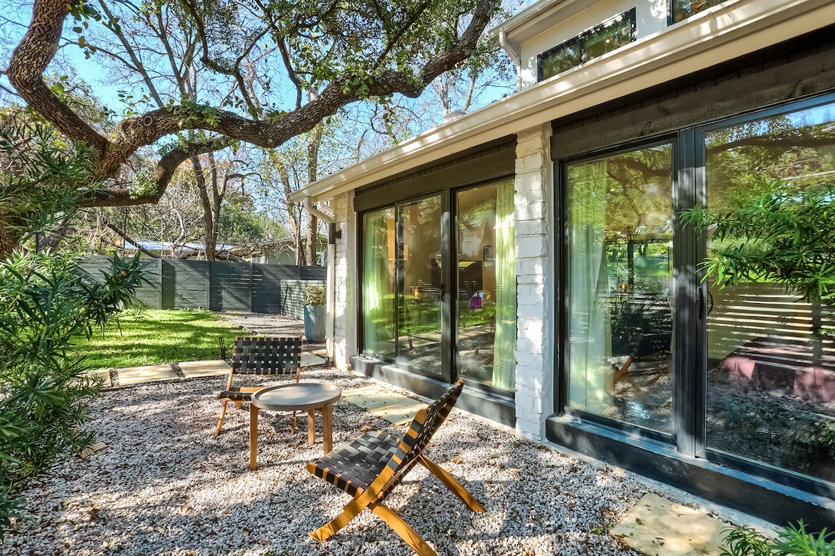 Phong cách đáp ứng chức năng tại nơi nghỉ dưỡng yên tĩnh của chúng tôi với đồ nội thất hiện đại, tác phẩm nghệ thuật nguyên bản và nhiều ánh sáng tự nhiên. Nấu ăn trong một nhà bếp tùy chỉnh kiểu dáng đẹp và dùng bữa tại một chiếc bàn sống ấm cúng. Nhấm nháp cà phê đặc sản và mở một cuốn sách ở hiên nhà có mái che quyến rũ. Đi bộ đến các địa điểm yêu thích của khu phố và các điểm nóng ở trung tâm thành phố. Tận hưởng kiến trúc chu đáo, sử dụng khéo léo các vật liệu xây dựng khai hoang và đồ nội thất do các nghệ nhân địa phương làm. Tìm mọi thứ bạn cần cho chuyến công tác hoặc khám phá Austin.