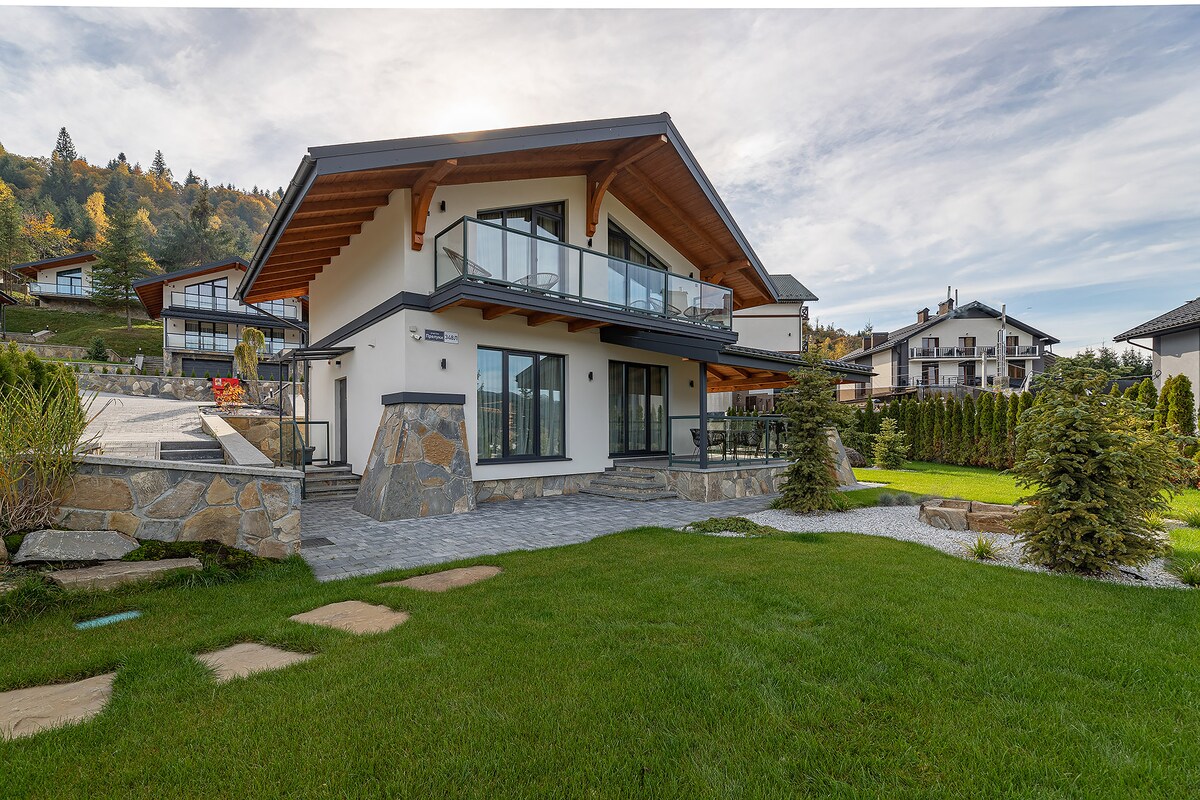 Một ngôi nhà hai tầng ấm cúng ngay trung tâm Carpathians với cửa sổ toàn cảnh và sân riêng! Chúng tôi mời bạn tận hưởng thời gian lưu trú thoải mái tại Bukovel. Nhà có phòng khách với ghế sofa và TV, bếp với khu vực ăn uống, phòng giặt ủi, phòng tắm ở tầng trệt và hai phòng ngủ với phòng tắm riêng (vòi sen và bồn tắm), TV và tủ quần áo. Sàn lớn với bàn ăn, sân riêng với bếp nướng và sân hiên để đốt lửa, ban công có tầm nhìn. Khóa thông minh để tự vào, internet, đỗ xe.