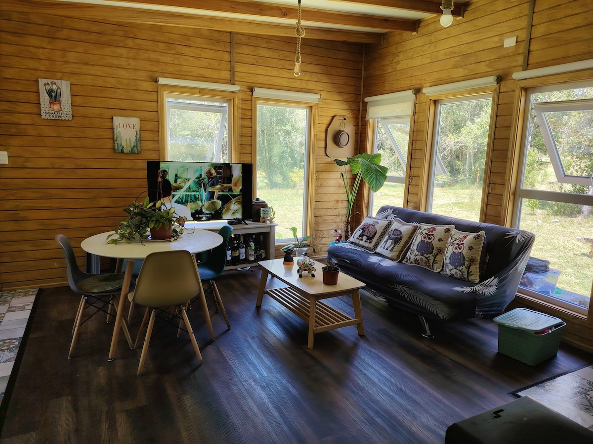 Acogedora cabaña rodeada de naturaleza, perfecta para descansar y desconectarse del ritmo de la ciudad. Cuenta con un espacio cálido y confortable. Ubicada en un entorno natural y privilegiado, ofrece privacidad, silencio, vistas encantadoras y acceso a la playa, equipada para que solo te preocupes de disfrutar y relajarte.