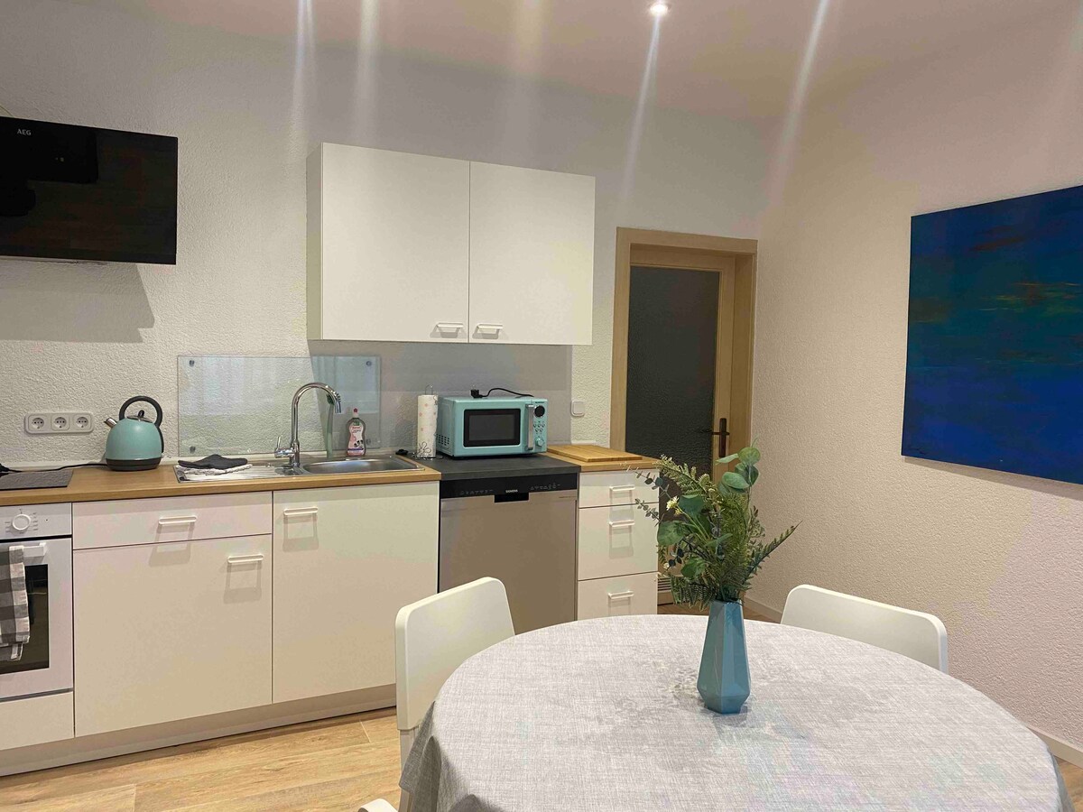 Chào mừng bạn đến với căn hộ mới được cải tạo và ấm cúng của chúng tôi! Căn hộ sáng sủa và quyến rũ cung cấp mọi thứ bạn cần cho một kỳ nghỉ thoải mái. Căn hộ có hai phòng ngủ, phòng khách thoải mái, bếp đầy đủ tiện nghi và phòng tắm rộng rãi. Rừng Palatinate và một hồ bơi gần đó. 15 phút đến Căn cứ không quân Ramstein và Kaiserslautern. Chúng tôi rất mong được đón tiếp bạn với tư cách là khách của bạn!