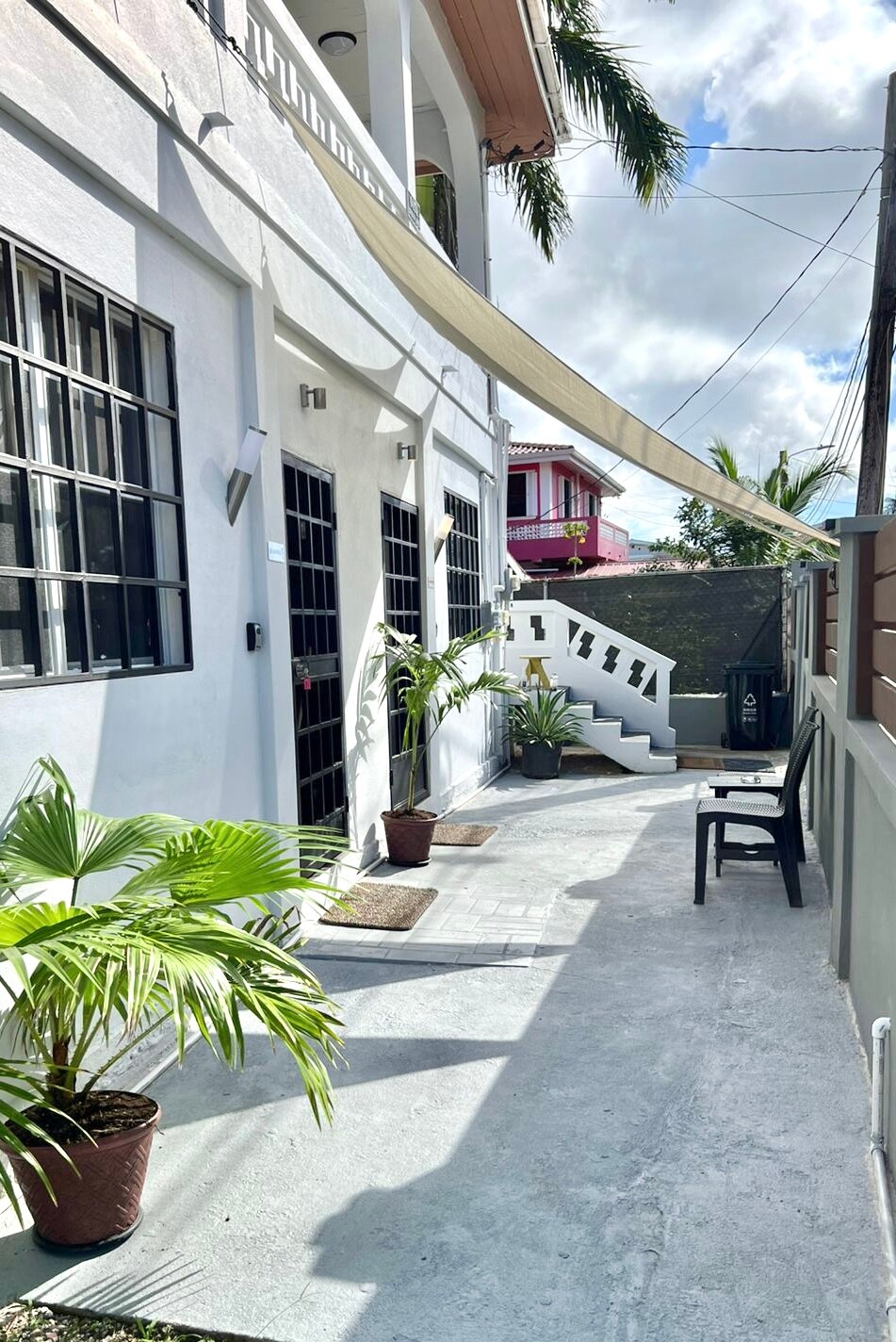 CORAL PARADISE VILLAS- We offer 3 newly renovated apartments that are situated in one of the safest areas of Belize City. Safest: we are on the same street as the Panama Embassy, and 1 block away from our Ex-Prime Minister’s Home. Just a 2 min walk from the Ocean a 15 min drive from the Int. Airport & 10 min from downtown. You'll be a 2 min walk from the popular local restaurant ‘Smokeez’, & neighboring Stores. Stay with us to visit popular tourist attractions like the Mayan ruins, & Islands!