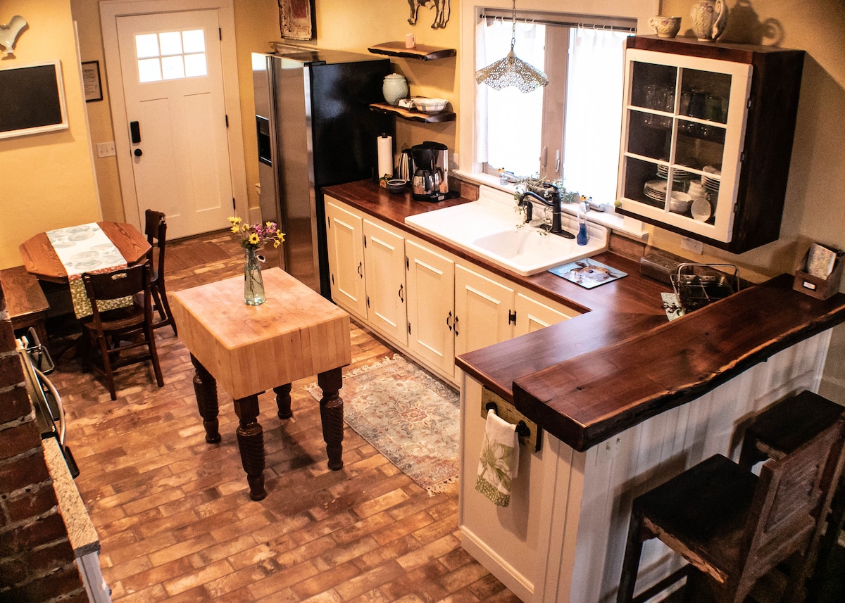 Nơi nghỉ ngơi hoàn hảo gần với tất cả! Tận hưởng sự riêng tư của bạn tại bungalow năm 1933 đã được khôi phục của chúng tôi trên 18 mẫu Anh chỉ cách I-70 vài phút. Thư giãn sau một chuyến đi đường bộ hoặc tập hợp bạn bè của bạn cho một buổi hòa nhạc. Ngâm mình trong bồn tắm và tận hưởng đêm ngủ ngon nhất trên nệm sang trọng. Nấu ăn trong nhà bếp dự trữ hoặc đi ăn tại các nhà hàng cách năm phút. Đi lang thang dọc theo những con đường được cắt tỉa, và để bọn trẻ chơi! Chúng tôi thân thiện với thú cưng và sẵn sàng kinh doanh với Gigabit Internet và thiết lập văn phòng.