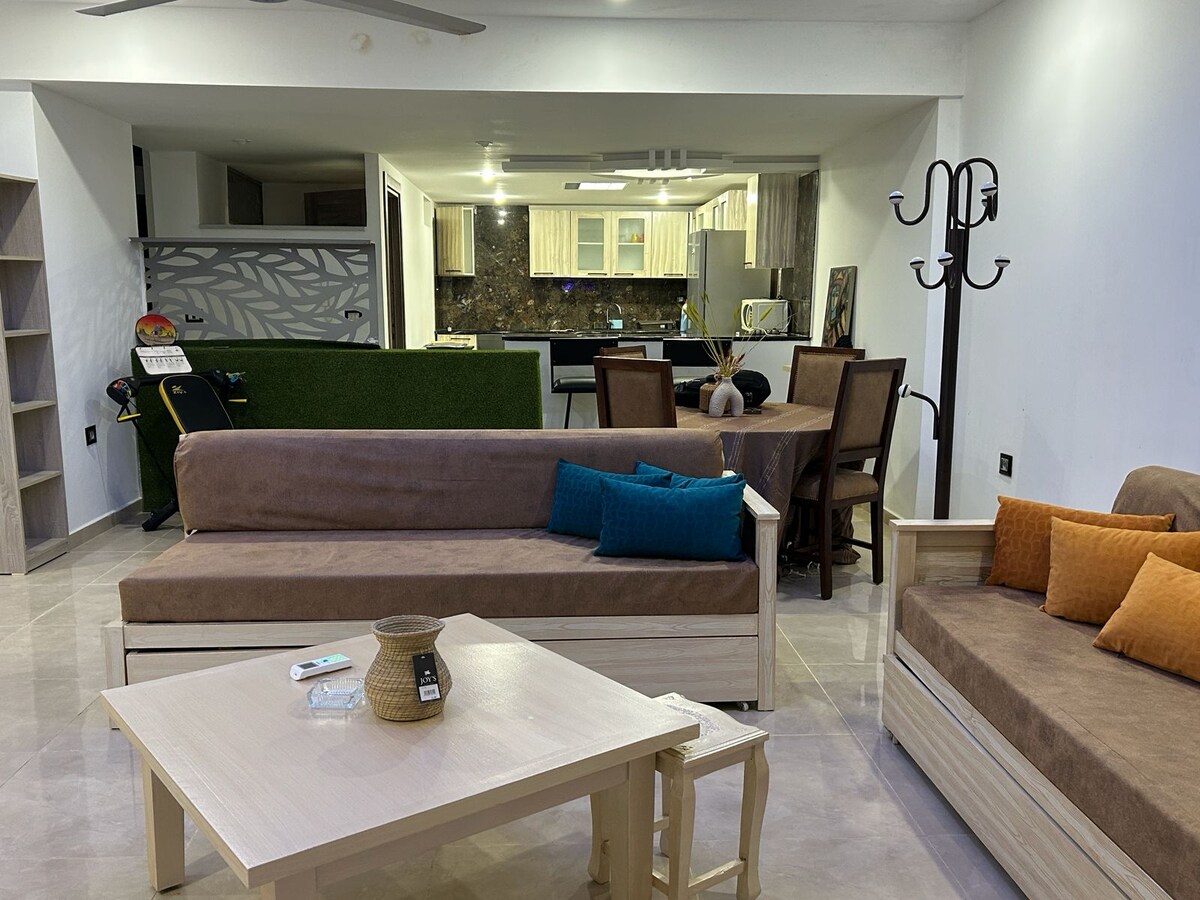 Chào mừng bạn đến với căn hộ duplex sáng sủa và rộng rãi của chúng tôi, có vị trí lý tưởng tại Raoued Plage, chỉ cách bãi biển 1 phút đi bộ. Nằm trong một khu dân cư nhỏ, yên tĩnh, phù hợp với gia đình, căn hộ hai tầng này hoàn hảo cho một kỳ nghỉ thư giãn bên bờ biển, chỉ cách Gammarth và La Marsa 15–20 phút đi xe hơi, và cách sân bay Tunis và trung tâm thành phố 30 phút. Nên thuê xe hơi để đi lại và di chuyển thoải mái.