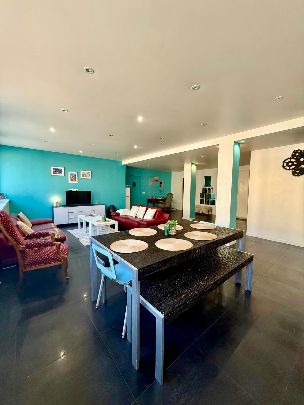 Căn hộ 3 phòng ngủ được trang bị đầy đủ tiện nghi tại siêu trung tâm MULHOUSE • 67 m2, nằm ở vị trí lý tưởng ngay trung tâm thành phố. • Trạm xe điện cách đó 5 phút đi bộ, xe điện ở cuối tòa nhà, cũng như tất cả các cửa hàng (ngã tư) thành phố, hiệu thuốc, nhà hàng...). • Ở tầng trên cùng (tầng 5) có thang máy trong một tòa nhà theo phong cách Haussmann, có sân thượng rộng khoảng 40 m2 nhìn ra ngôi đền St Etienne, Vosges và Rừng Đen. Nó có kết nối internet cáp quang và TV kết nối với Netflix.