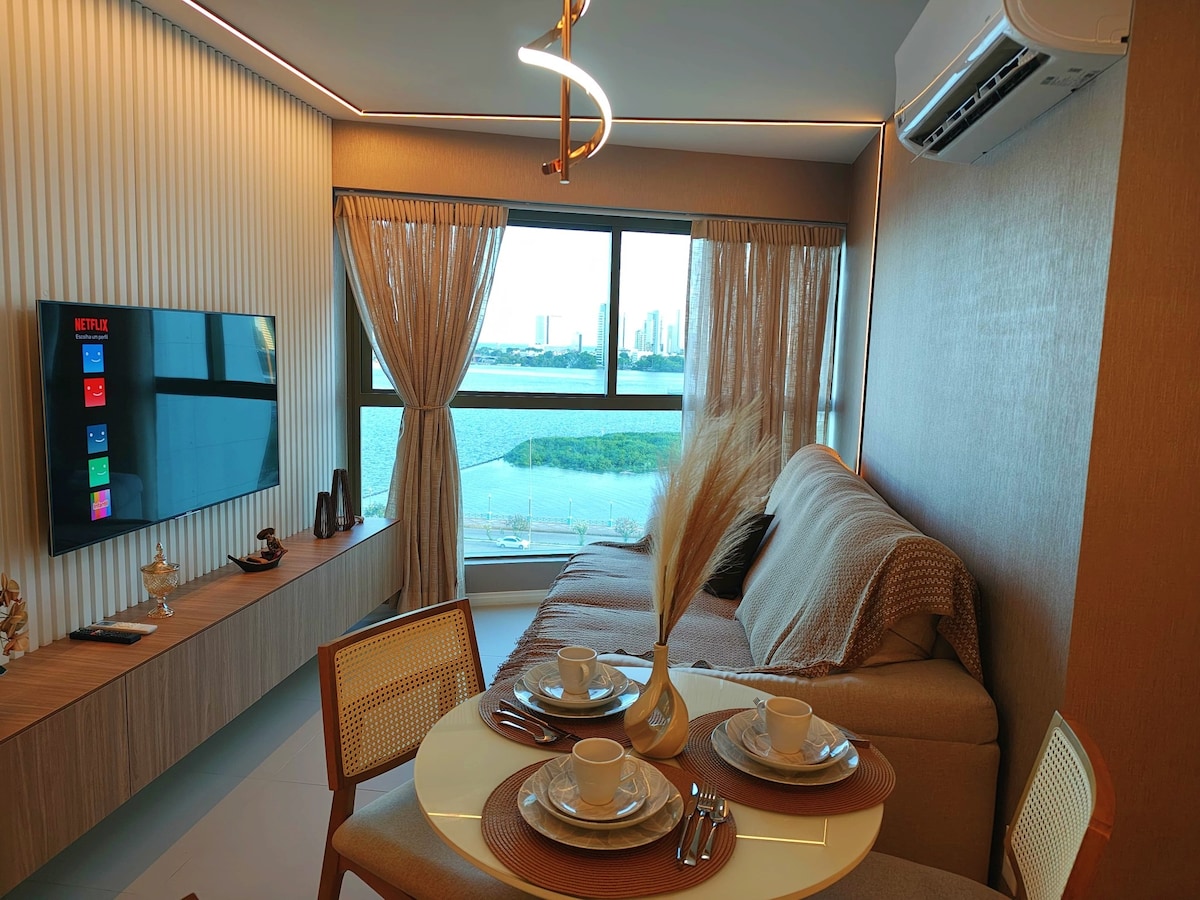 Căn hộ hiện đại và thoải mái, lý tưởng cho những người tìm kiếm tính thực tế và sức khỏe. Hai phòng ngủ lớn có điều hòa không khí với giường thoải mái và TV 32". Phòng khách rộng rãi với TV 52 inch, điều hòa không khí 22 BTU và internet trực tiếp 500 mg. Nhà bếp đầy đủ dụng cụ, nồi chiên không dầu, máy xay sinh tố, máy pha cà phê điện, máy làm bánh mì kẹp và máy lọc nước lạnh. Khóa điện tử. Bãi đỗ xe cố định miễn phí, người gác cửa 24 giờ. Vị trí đắc địa, cách Bãi biển Boa Viagem vài bước chân 🚫Chúng tôi không chấp nhận thú cưng