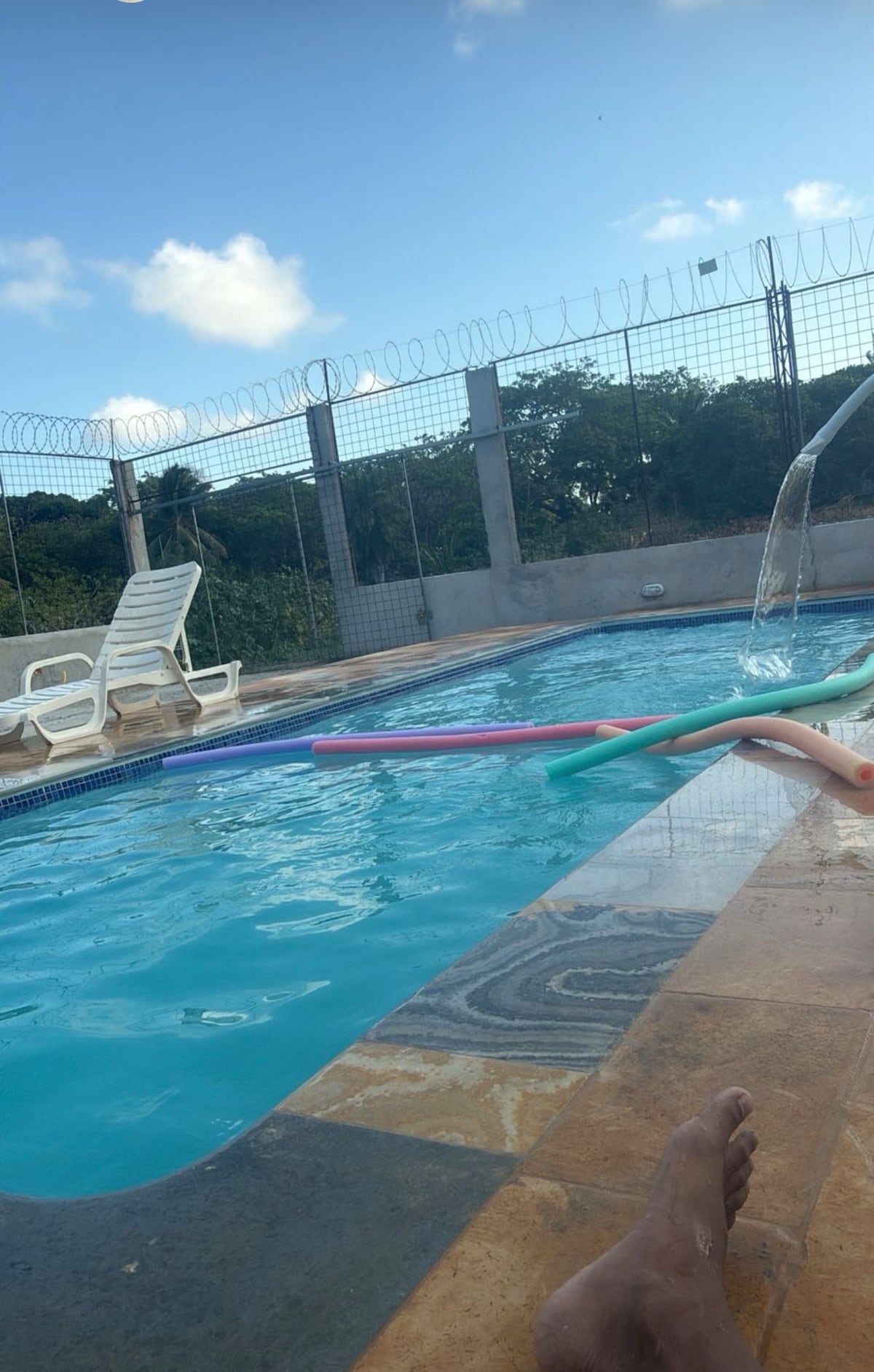 Relaxe com toda a família nesta acomodação tranquila. Com grande espaço, toda murada, com campo de futebol, bastante árvores frutíferas, casa completa com suítes com ar condicionado. Salão de festas, com freezer, geladeira e banheiro externo. Piscina com água mineral e cascata.