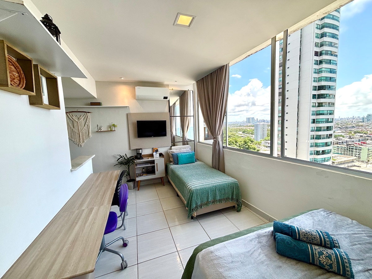 Bạn đã chuẩn bị cho những điều tốt đẹp nhất ở Recife chưa? Căn hộ theo chủ đề rạn san hô của chúng tôi 🪸 mang đến 32 m2 nét quyến rũ và ấm áp thuần khiết. Sức chứa tối đa là 4 người: - 1 giường đôi và ghế sofa bicama; - Bếp đầy đủ tiện nghi; - Ban công với tầm nhìn tuyệt vời 🤩 - Cách Shopping Boa Vista 400m và cách Đại học Công giáo 300 m; - tầng trên cùng là Lazer với một hồ bơi tuyệt vời từ tầm nhìn 360° ra thành phố. Lưu Ý: Chúng tôi không có khăn tắm.