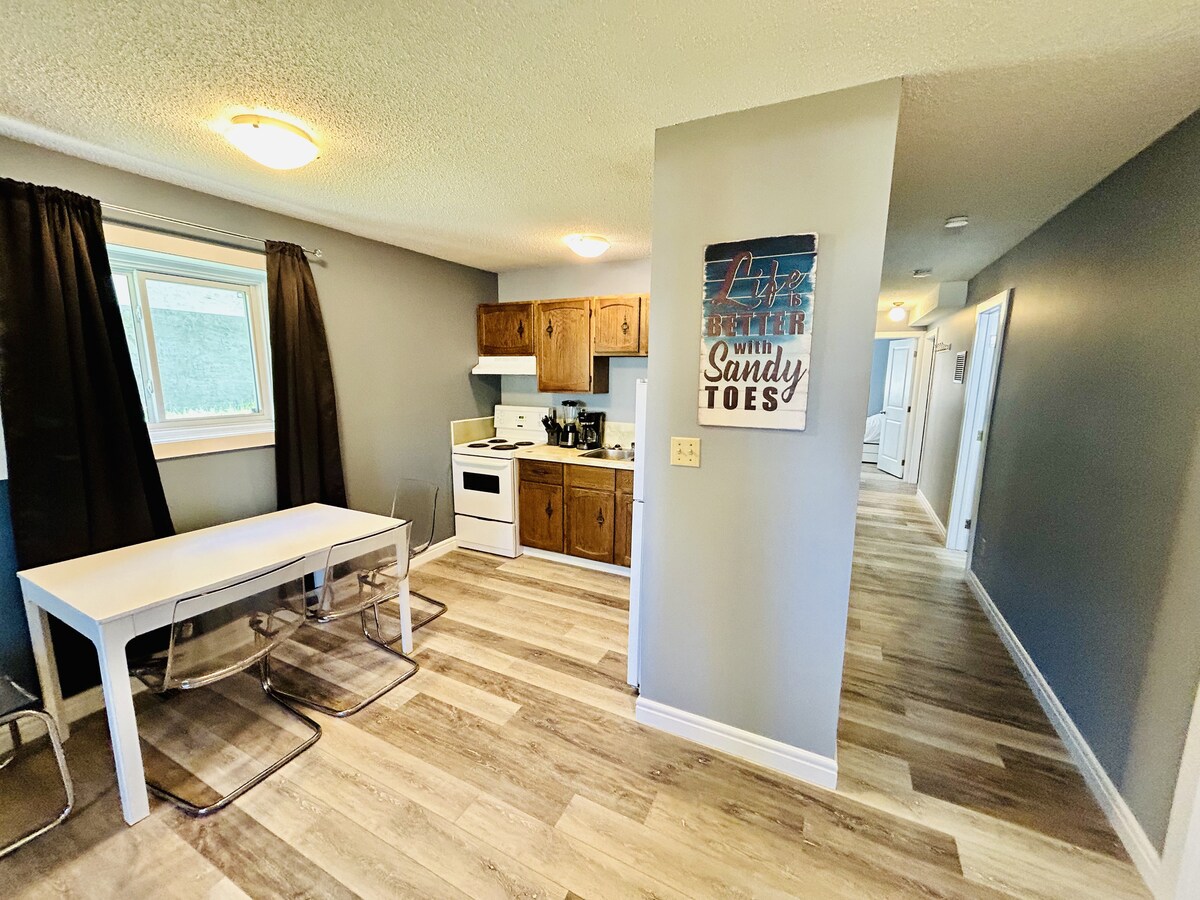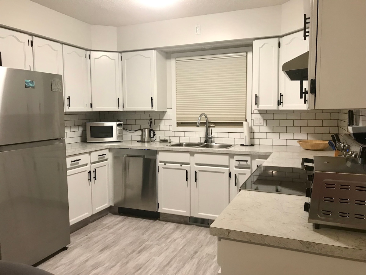 Hãy nghỉ ngơi tại căn hộ tầng hầm hai phòng ngủ thoải mái và đầy đủ tiện nghi, gần như không có cầu thang, có lối đi bộ ra ngoài, với một con đường đi bộ đẹp ngay phía sau: lý tưởng để đi xe đạp, trượt băng hoặc đi dạo. Tọa lạc tại vị trí thuận tiện gần trung tâm Collicut và công viên Westerner, đây là một cơ sở lý tưởng để khám phá Red Deer. Dù là đi nghỉ mát hay đi công tác, bạn có thể tận hưởng thời gian ở của mình trong ngôi nhà này với TV, WiFi, bếp đầy đủ, sân hiên/sân sau riêng và không gian làm việc yên tĩnh, chuyên dụng