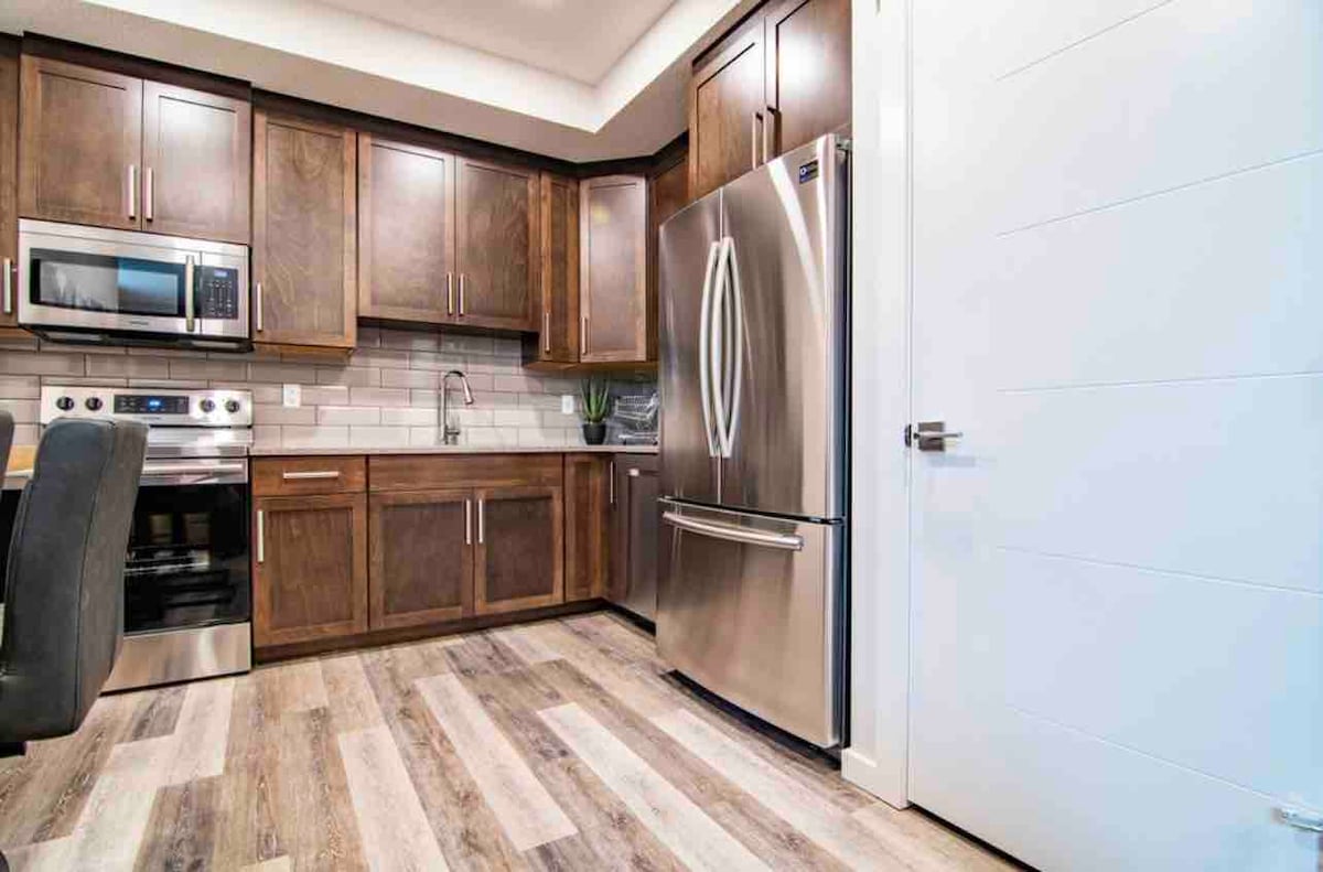 Private suite: kitchenette, living room, bathroom, and bedroom with a king sized bed. ✓ Single Serve Coffee Pods ✓ Fast Wifi and TV with Netflix, Prime, & More ✓ Family friendly ✓ Access to Red Deer's Vast Walking Paths ✓ 8 min to Bower Mall ✓ 5 min to Colicutt Centre ✓ 12 min to Red Deer Polytechnic ✓ 6 min to Westerner Park ✓ 15 min to Canyon Ski Resort ✓ 10 min to Red Deer Hospital