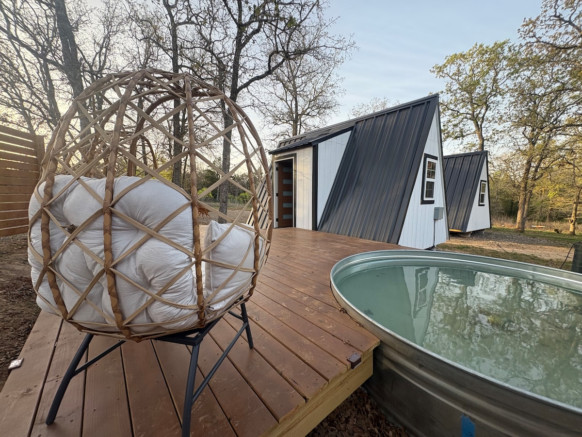 Thư giãn trong cabin hiện đại này, nơi thiên nhiên gặp gỡ sự thoải mái. Tận hưởng trải nghiệm tương tác với động vật nông trại thân thiện mong muốn có thú cưng và đồ ăn nhẹ. Đắm mình trong khung cảnh ao thanh bình, bò gặm cỏ và ngựa. Khám phá những con đường mòn trên diện tích hẻo lánh. Rèm lọc ánh sáng, điều hòa không khí và Wifi Starlink. Được xây dựng vào năm 2023. Chúng tôi có lợn, dê mini, bò, ngựa, lừa và một chú chó lab đen để chào hỏi Gần Circuit of the Americas, Bastrop, Austin Airport và Smithville.