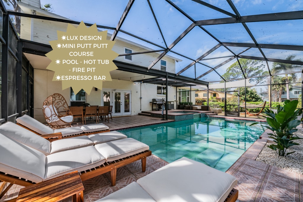 Welcome to The Break, your tropical oasis near Treasure Island Beach. - 2 bedrooms, 1 bath for up to 4 guests - Cozy living room with smart TV and board games - Fully-equipped kitchen for gourmet meals - Relaxing hot tub and BBQ in the tropical backyard - Beach gear provided for your convenience - Short walk to local attractions and beaches Experience your very own private oasis as you step into the backyard, ready to serve as a backdrop for your favorite vacation memories.