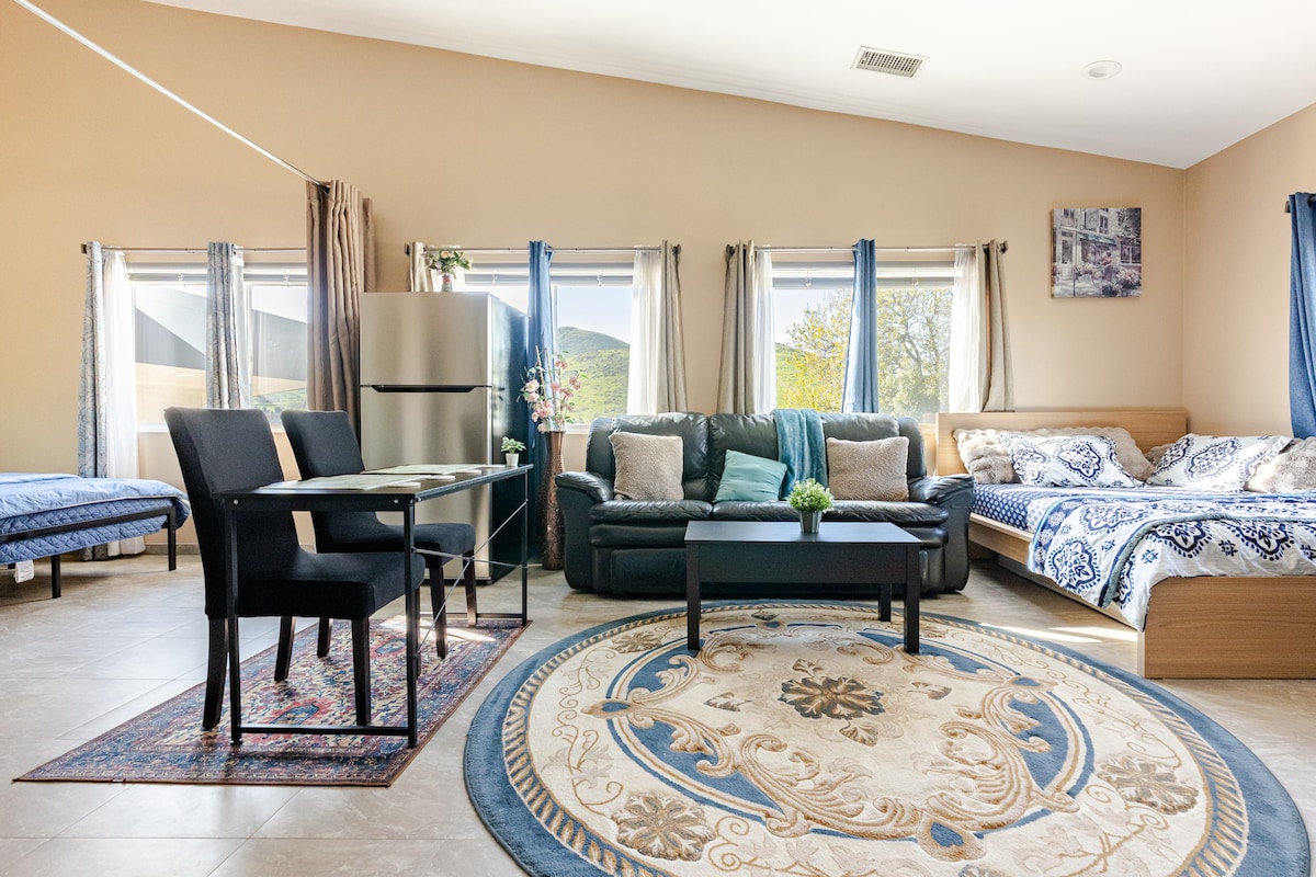 Studio sang trọng Chào mừng bạn đến với Studio mới được tu sửa hoàn toàn của chúng tôi ở khu thượng lưu Yucaipa!! Chỉ cách các nhà hàng, nhà máy bia, quán rượu, trung tâm biểu diễn nghệ thuật và các buổi hòa nhạc ngoài trời mùa hè Yucaipa vài phút đi bộ và nhiều hơn thế nữa. Lái xe: Công viên khu vực Yucaipa 3 phút Oak glen 10 phút Sân golf 10 phút Thác rừng 15 phút Palm Springs 35 phút Sân bay Ontario 35 phút Gấu lớn 50 phút