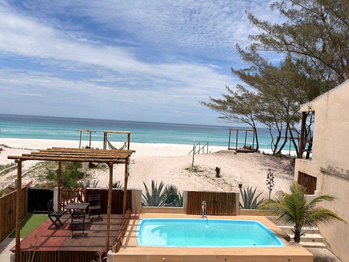 Ngôi nhà dễ chịu, đứng trên cát, hướng ra biển Arraial do Cabo. Chúng tôi cách sân bay Cabo Frio-RJ 6 km, cách sân bay Cabo Frio-RJ 11 phút. Không gian có một căn hộ (nhìn ra biển), có máy lạnh, giường đôi và một giường đôi với hai nệm đơn. Phòng 2 (không phải phòng suite), có điều hòa không khí, hộp giường đôi, với hai giường đơn phụ. Có nhà bếp được trang bị, khu vực dịch vụ đầy đủ, 2 phòng tắm đầy đủ và phòng khách với giường sofa và TV. Ñ Được phép tổ chức sự kiện. Insta: @amar_casa