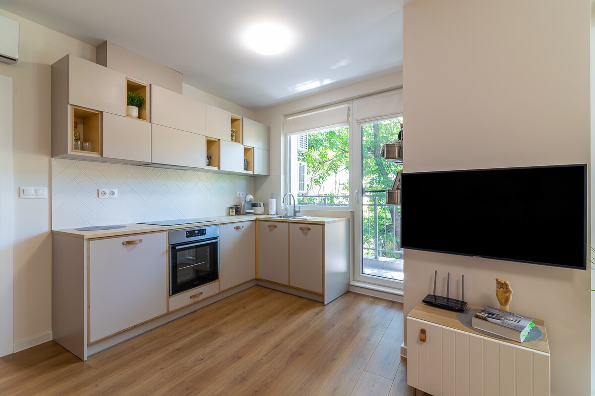 Với vẻ ngoài hoàn toàn hiện đại, căn hộ một phòng ngủ của chúng tôi hiện đã sẵn sàng chào đón bạn! Nội thất thanh lịch được lựa chọn cẩn thận để làm cho bạn cảm thấy như ở nhà. Căn hộ được trang bị đầy đủ mọi thứ bạn cần cho thời gian lưu trú ngắn hoặc dài hạn. Theo ý của bạn cũng là một chỗ đỗ xe. Kết nối Wi-Fi mạnh mẽ bao phủ toàn bộ chỗ ở. Không gian được khử trùng theo Tiêu chuẩn vệ sinh của Quản lý phẳng.