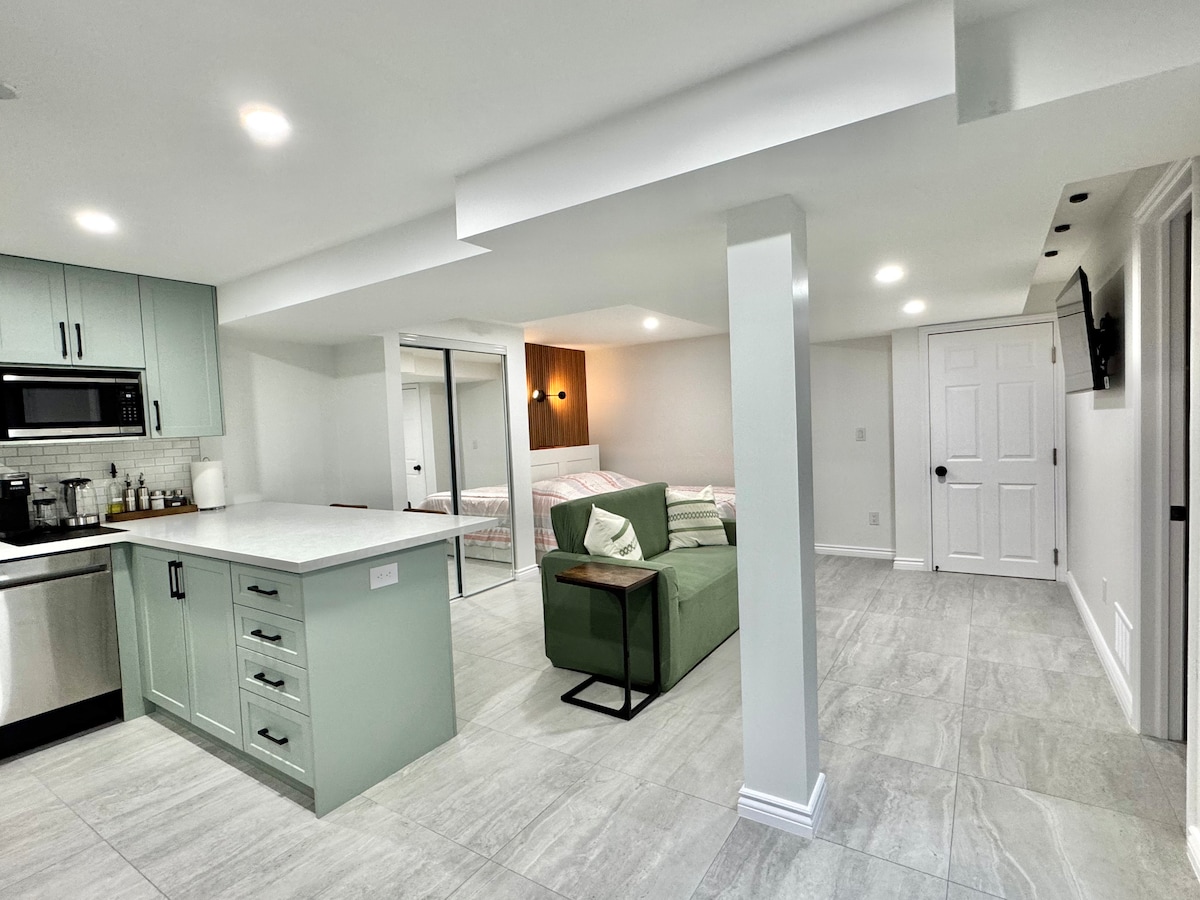 Thư giãn trong căn hộ tầng hầm đầy phong cách và yên bình của chúng tôi! Hoàn hảo cho hai người hoặc khách đi một mình. Nằm ở vị trí thuận tiện cách đường cao tốc 401, 407 và vài phút đi từ Ga Whitby Go; nơi bạn có thể đi tàu nhanh chóng và thoải mái đến Trung tâm thành phố Toronto! Ngoài ra, còn có một trạm xe buýt địa phương ngay bên ngoài ngôi nhà. Bạn có thể tìm thấy nhiều cửa hàng tạp hóa, cửa hàng tiện lợi, nhà hàng (đồ ăn nhanh và ẩm thực cao cấp), giải trí, phòng tập thể dục, công viên và nhiều địa điểm khác gần đó.