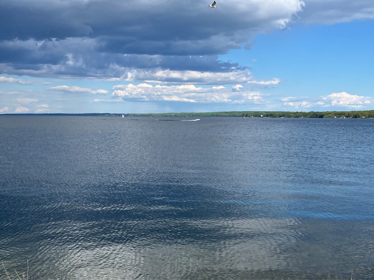 Waterfront với bến tàu riêng. Ngôi nhà cao cấp được cải tạo + bồn tắm nước nóng mới, tầm nhìn toàn cảnh vịnh thành phố với hoàng hôn mùa hè +bình minh. Các bước đến bãi biển và công viên Minet's Point. 4 bdrms thích hợp & 2 ghế sofa kéo ra (Queen & Twin) 3 bthrms đầy đủ + phòng xông hơi khô, hơn 2400+sqft. Prking cho 3 chiếc xe, prking bổ sung có sẵn thông qua lô bên cạnh. Bếp gas BBQ, hố lửa, 2x gas FP, Wifi nhanh & TV 77", wshr/dryr. 48amp EV pwr. Minuts đến Marina cho thuê Seadoo/thuyền. Wlking distnce để thưởng thức ẩm thực cao cấp/quán rượu và cửa hàng. Lướt ván diều và câu cá trên băng
