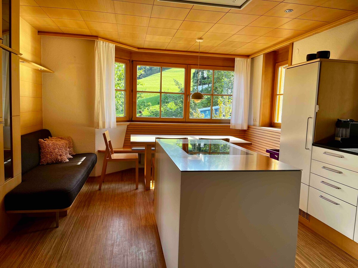 Căn hộ cổ điển đích thực ở tầng trệt của nhà chúng tôi với phòng tắm riêng, bếp chung, đồ nội thất cổ và sự quyến rũ từ những ngày trước. Ngôi nhà ván lợp truyền thống những năm 1950 mang đến cho bạn cảm giác hoài cổ với sàn gỗ cọt kẹt và nội thất cổ. Nằm ở một trong những khu vực đẹp nhất của Áo - Bregenzerwald - bạn sẽ thưởng thức ẩm thực địa phương tại các nhà hàng gần đó và khám phá các Khu nghỉ dưỡng trượt tuyết tuyệt vời của chúng tôi ngay bên cạnh chỗ ở của bạn! Trạm giao thông công cộng ngay trước nhà!