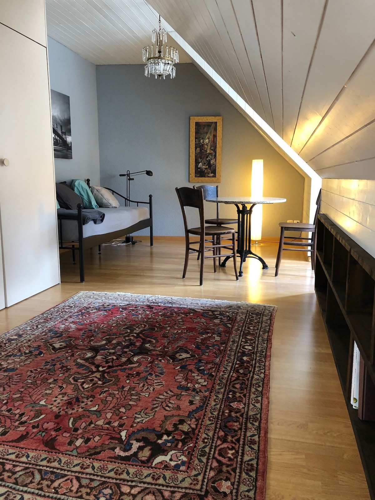 Khách của chúng tôi có căn hộ riêng, nhưng nó chỉ được cho một bên thuê. Nó có hai giường đôi và một giường đơn. Cũi em bé theo yêu cầu. Căn hộ ở tầng 2, có thể đi qua cầu thang (không có thang máy), nhưng rất yên tĩnh và có tầm nhìn tuyệt vời ra Munot, Rhine và Schaffhausen. Bạn có thể đi bộ đến thành phố Schaffhausen trong 10 phút. Chúng tôi sẽ cung cấp chỗ đỗ xe cho xe của bạn. Sân thượng lớn để tắm nắng không bị xáo trộn.