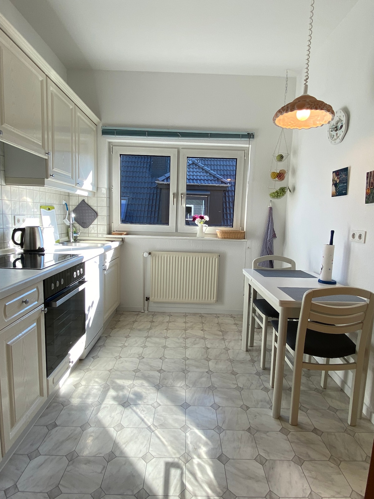 Căn hộ 70 m2 ấm cúng nằm ở tầng trên trong ngôi nhà một gia đình của chúng tôi với lối vào và sân thượng riêng. Phòng ngủ có giường đôi rộng 160 cm với đầu giường, tủ quần áo và TV. Phòng khách được trang bị ghế sofa góc, giường 120cm, tủ quần áo, TV. Từ phòng khách, một cầu thang tiết kiệm không gian (chú ý không có lan can!) đi vào tầng nhọn. 3 người nữa có thể ở lại đó. Bếp được trang bị đầy đủ cho 6 người (có máy rửa chén).