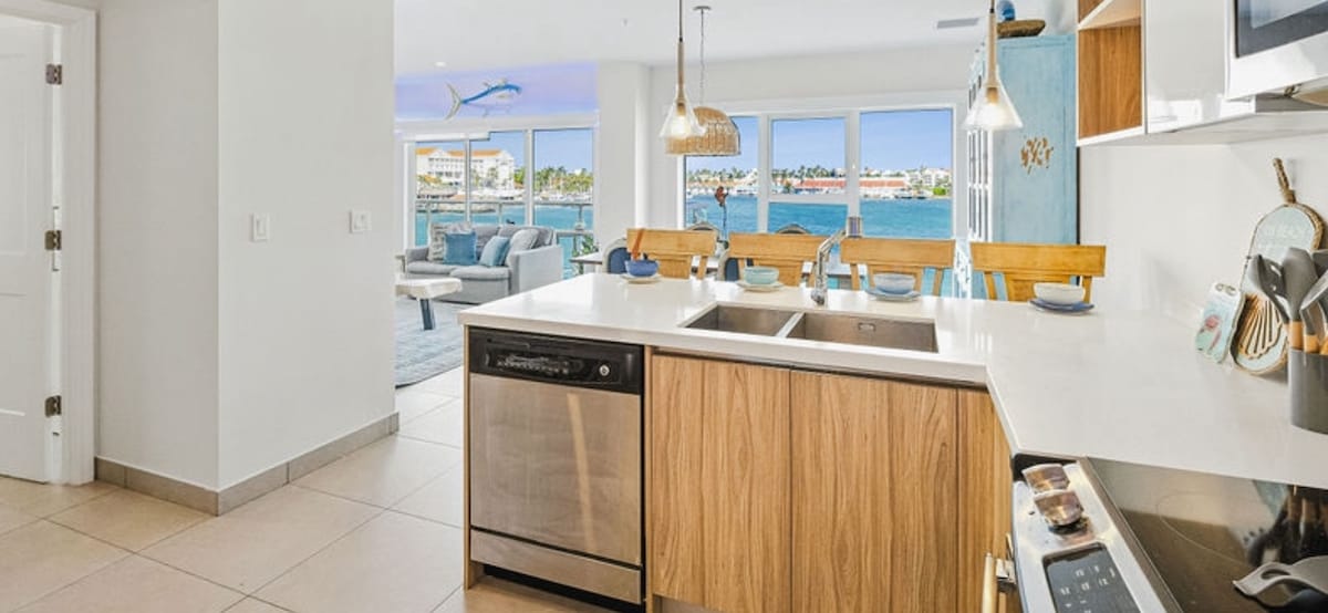 Oceanview 1 phòng ngủ King:Hồ bơi|Dock|Ban công|Nhà bếp