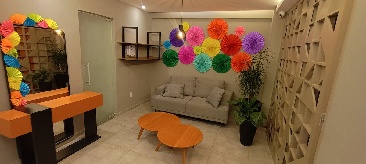 My House 810 – Thoải mái và thiết thực ở São João del-Rei Một studio được suy nghĩ chi tiết để mang đến trải nghiệm ấm cúng và tinh tế. Giường ấm cúng với ánh sáng dịu nhẹ, bếp đầy đủ tiện nghi, wifi chất lượng và trang trí tối giản với sự quyến rũ. Ngoài không gian bên trong, bạn có một khu vực ngoài trời chung hoàn chỉnh, với hồ bơi, khu vực nướng BBQ, môi trường học tập hoặc họp (để thư giãn hoặc duy trì năng suất). Dễ dàng đến bến xe buýt, UFSJ và trung tâm lịch sử.