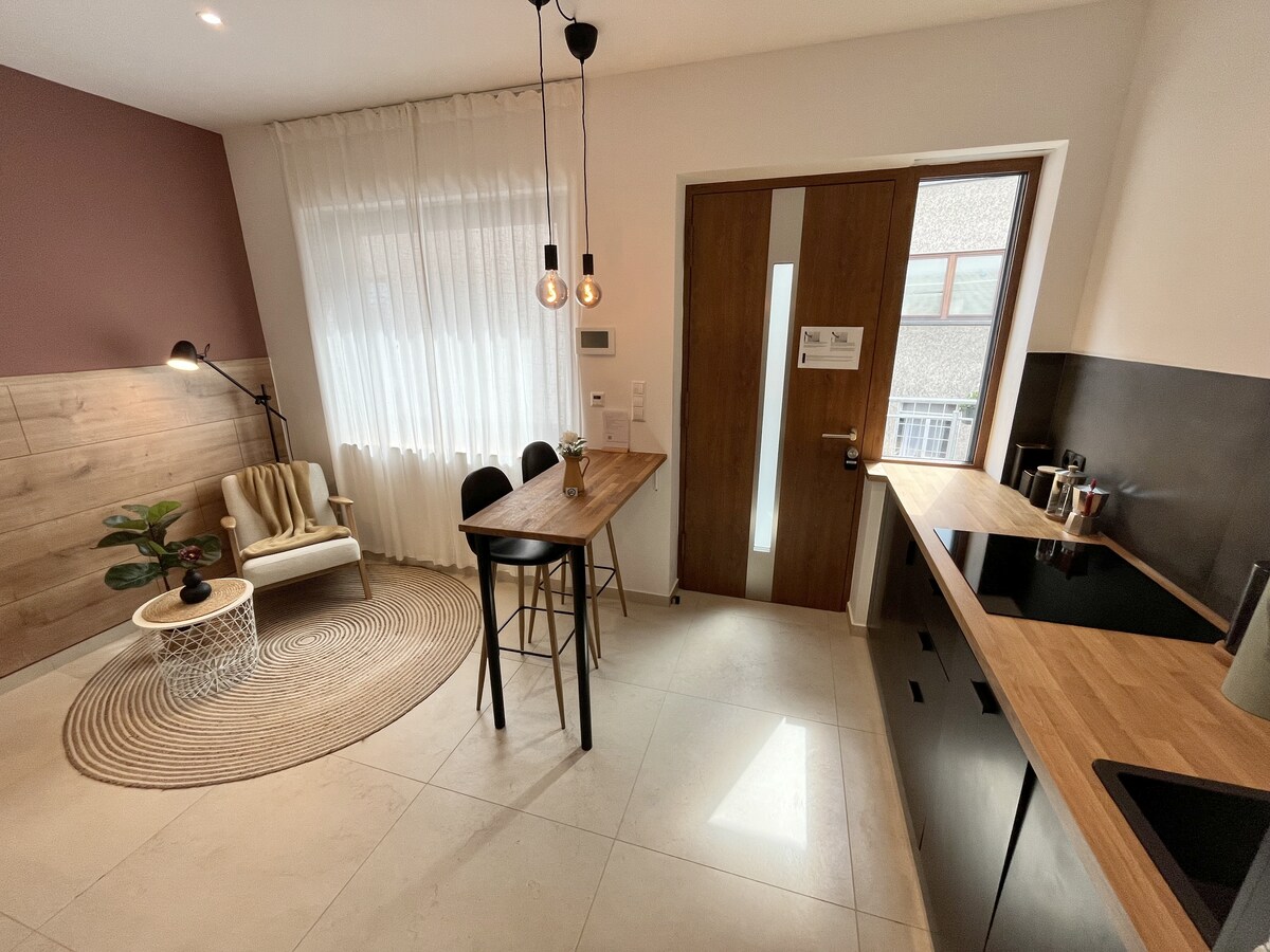 Chỗ ở cao cấp theo phong cách hiện đại! Lý tưởng cho người độc thân hoặc cặp đôi - có sự yên bình và tận hưởng thời gian nghỉ ngơi. - Trượt tuyết, đi bộ đường dài, đạp xe đạp, đi bộ đường dài và nhiều hoạt động khác - Đỉnh Neckar và Black Forest ngay bên ngoài cửa ra vào - Thể dục & Chăm sóc sức khỏe: phòng xông hơi khô, tạ, HulaHoop, 2 xe đạp leo núi - Nhà bếp đầy đủ tiện nghi với tất cả các đồ trang trí - Ban công tuyệt vời phía tây nam - Khu vực thư giãn (thư giãn hoặc làm việc từ xa) - Hệ thống sưởi dưới sàn với sàn gỗ sồi ấm cúng - Máy pha cà phê Nespresso - eCharging Wallbox