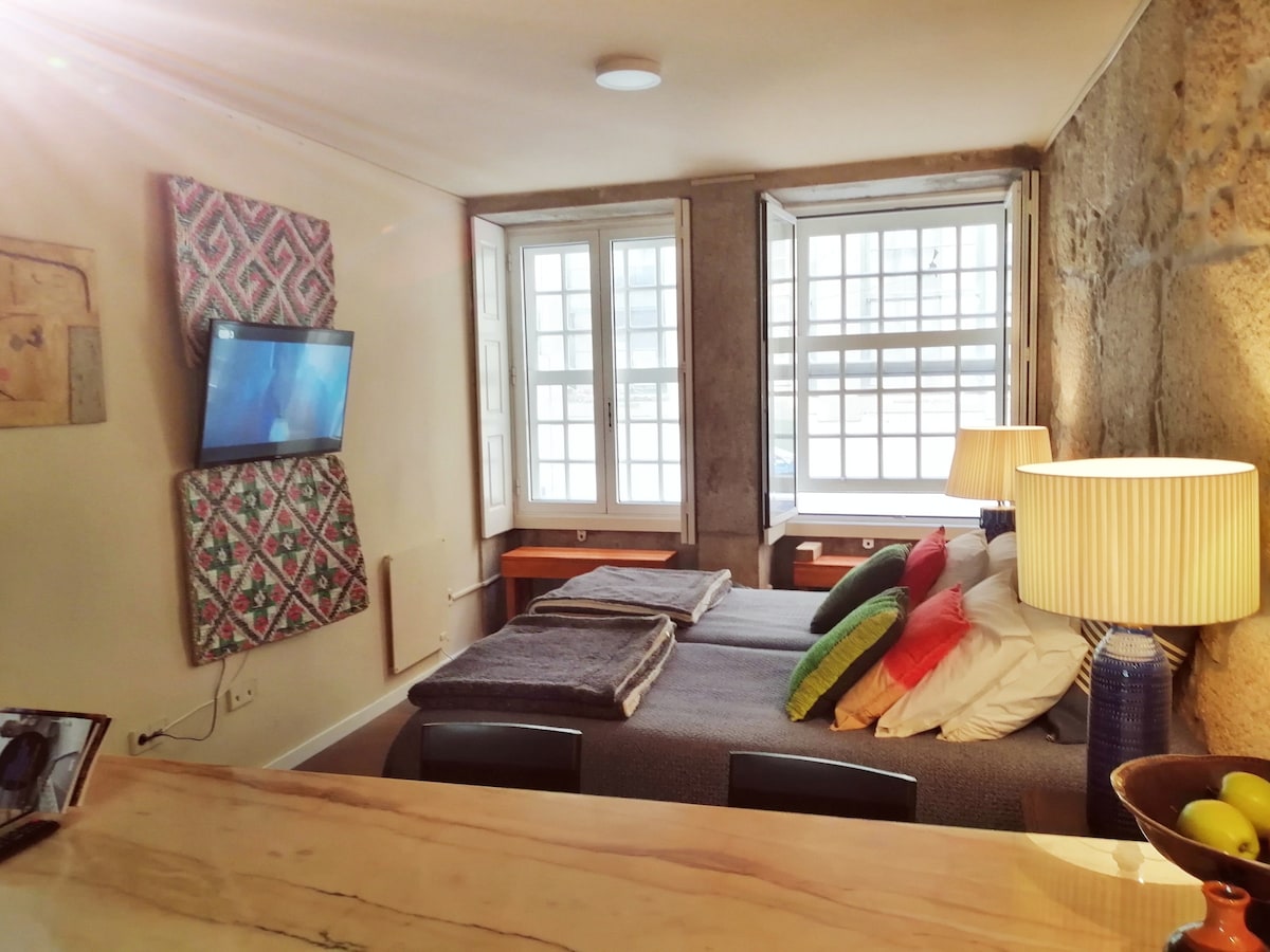 Nằm cách trung tâm thành phố chỉ vài phút, căn hộ này hoàn hảo cho các cặp đôi hoặc bạn bè muốn có thời gian lưu trú thư giãn tại thành phố lịch sử của chúng tôi! Hoàn toàn phù hợp để chứa tối đa 2 người, căn hộ này được trang bị đầy đủ nội thất thoải mái, tiện nghi phong phú và điều hòa nhiệt độ. Căn hộ sáng sủa của chúng tôi chỉ cách Cầu Louis I nổi tiếng 10 phút đi bộ, cách Nhà thờ Porto 6 phút và cách ga tàu São Bento 7 phút!