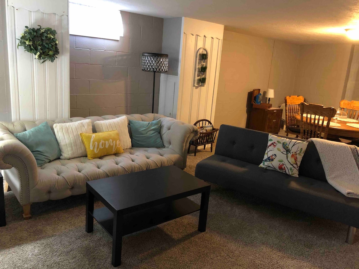 Bạn sẽ ở trong một căn hộ tầng hầm thư giãn, mới được cải tạo với nhà bếp đầy đủ tiện nghi và lối vào riêng. Không gian của chúng tôi thân thiện với gia đình và doanh nghiệp, vị trí thuận tiện chỉ cách Đường mòn xe đạp B&O vài bước chân, cách Mochican State Forrest, Snow Trails Ski Resort, Malabar Farm, Pleasant Hill Lake, chèo thuyền và lái xe ngắn đến Mansfield Reformatory, Đường đua Mid-Ohio và cách Trung tâm bắn súng Cardinal 31 dặm. Nhà của chúng tôi có 3-4 người với giường cỡ queen và futon .
