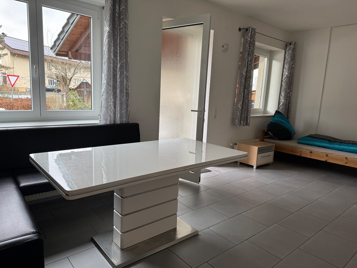 "Tetto Piccolo" tôi gọi cái này ở nhà. Đó là một căn hộ có 40 m^2 . Sau nhà là một sân chơi nhỏ. Kế bên là Trường Sinh Lý Trị Liệu và Rhein Jura Klinik. Bồn tắm nhiệt cũng có thể đạt được trong vòng 3 phút đi bộ. Biên giới Thụy Sĩ cũng rất gần. Vị trí yên tĩnh gần hồ trên núi và tầm nhìn tuyệt đẹp ra Thụy Sĩ mời bạn thư giãn. Wifi có sẵn. Ngoài ra, còn có một khoản thuế du lịch 2,5 €/ngày/người sẽ được thanh toán.
