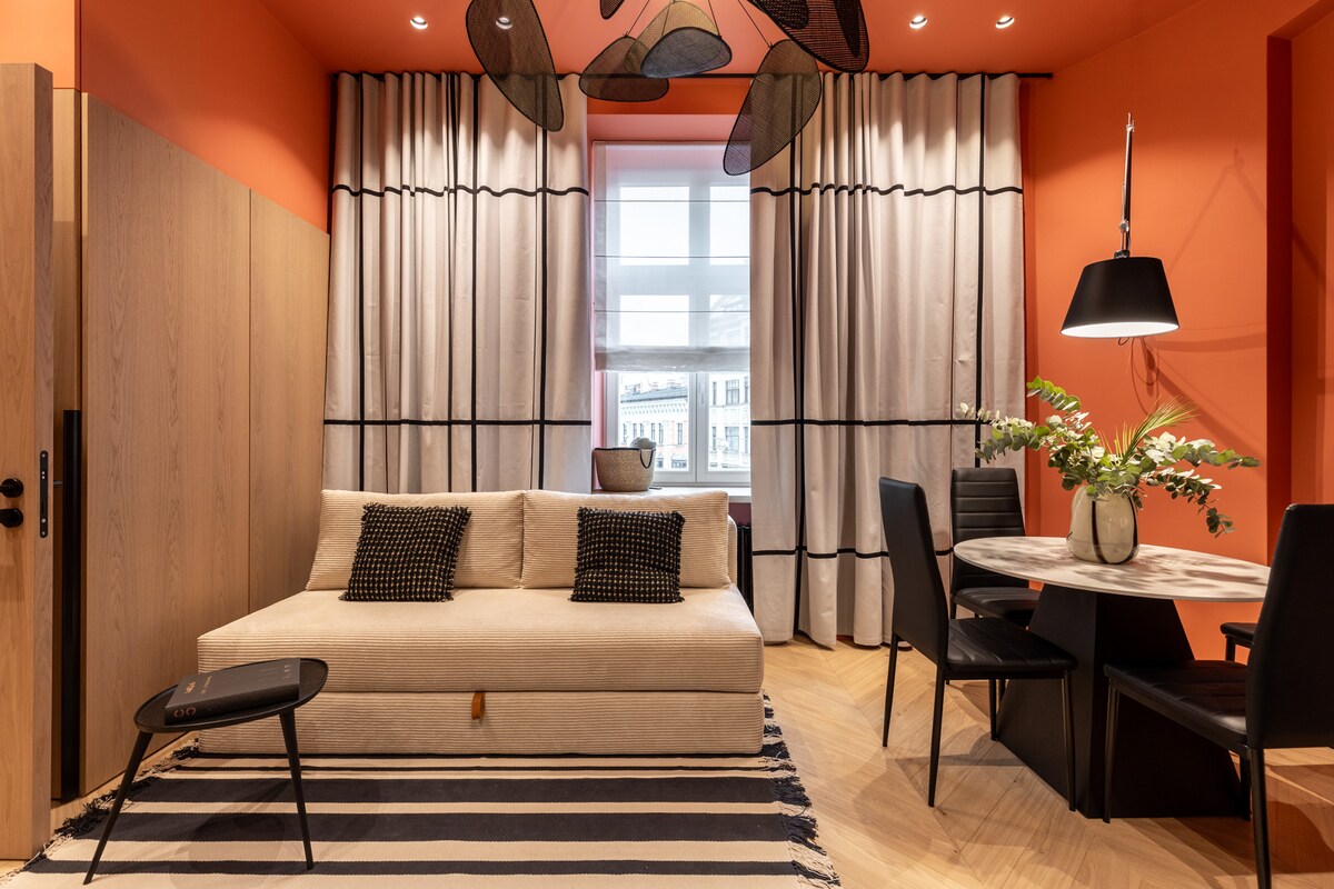 Căn hộ hai tầng hiện đại và rộng rãi ở tầng trên cùng với trần nhà cao, nhiều ánh sáng ban ngày và sân thượng lớn. Căn hộ nằm ở Quận Art Nouveau, một khu phố uy tín và giàu có chỉ cách Khu phố cổ 10 phút đi bộ, nổi tiếng với kiến trúc và tuyển chọn các nhà hàng và quán bar. Bạn sẽ thích không gian của căn hộ, bầu không khí thư giãn, sân thượng lớn, nhà bếp đầy đủ tiện nghi, khu vực ăn uống và phòng khách. Hoàn hảo để thư giãn sau khi khám phá thành phố.