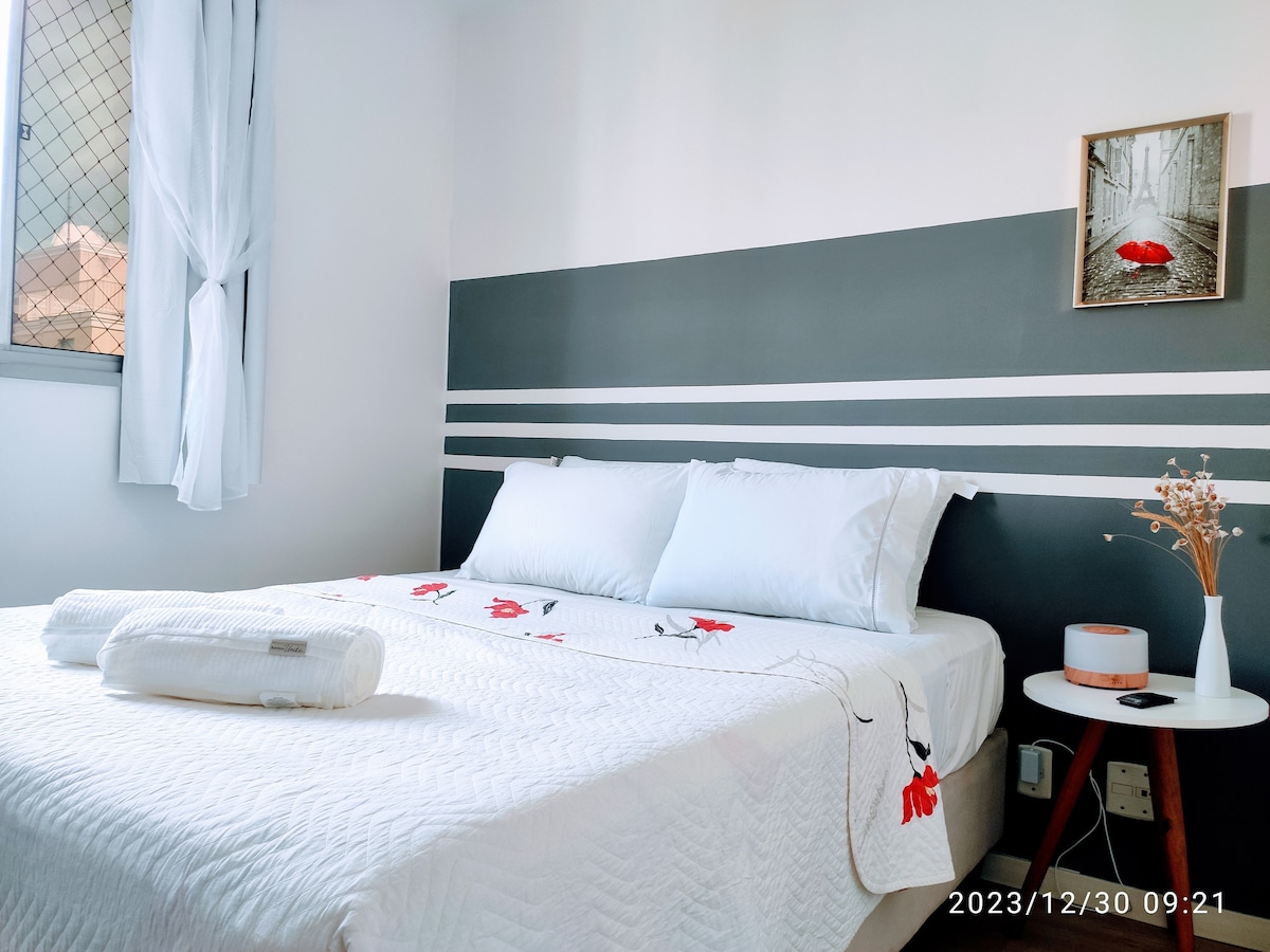 Hãy nghỉ ngơi trong một căn hộ nơi mọi thứ đã được chuẩn bị để nghĩ về sự thoải mái và thiết thực của bạn. KHÔNG CÓ GARA TRONG KHU CHUNG CƯ CAO CẤP Bằng xe hơi nằm cách Trung tâm Belo Horizonte 11 phút, cách UFMG (1,9 km) 5 phút, cách Mineirão 6 phút và cách Pampulha Lagoon 7 phút. Dễ dàng đi đến một số tuyến xe buýt đưa bạn đến bất cứ nơi nào trong BH, 1 phút đến Ga xe đưa đón "Di chuyển" và các tuyến xe buýt khác