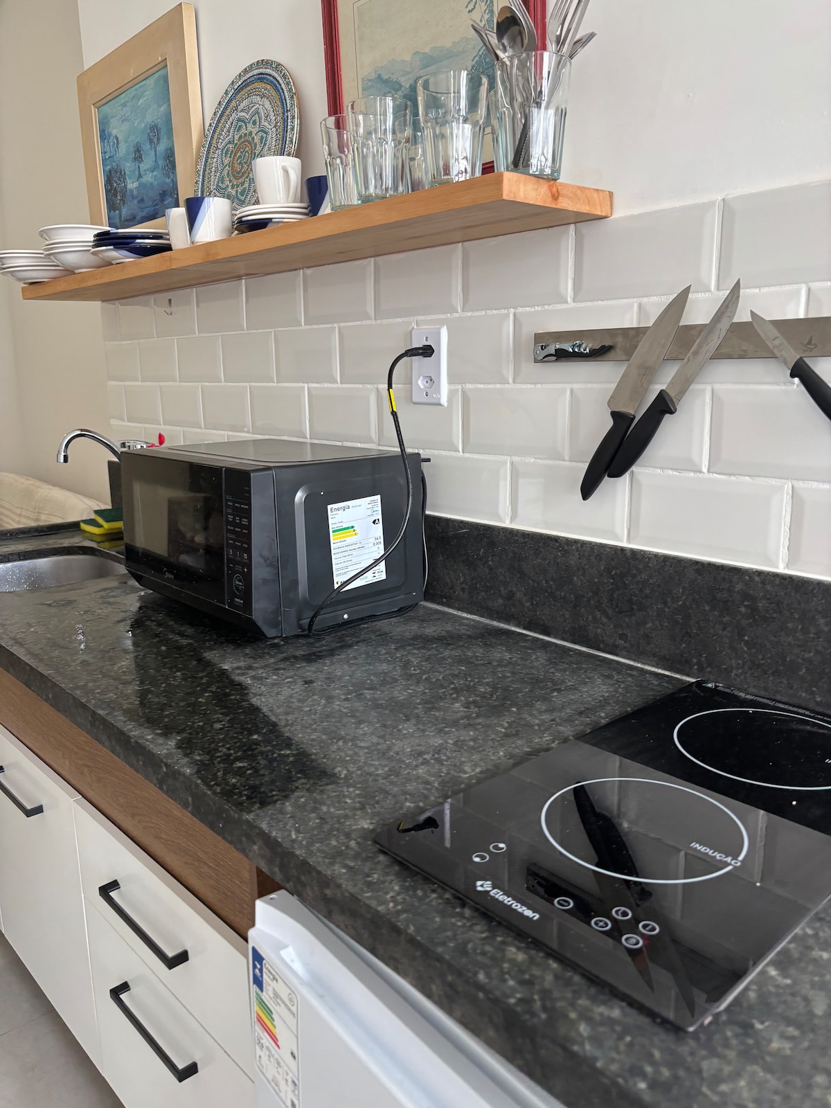 Suite đẹp, ban công cho người sành ăn, tầm nhìn ra bãi biển Barra da Tijuca, Pedra da Gávea và Canal da Barra. Ban công nhỏ có quầy rửa chén, được trang bị cho các bữa ăn nhanh và thiết thực với lò vi sóng, nồi chiên không khí, máy làm bánh sandwich, máy pha cà phê, máy nướng bánh mì, minibar, dao kéo, đĩa, ly và nồi lò vi sóng nhỏ. CHÚ Ý KHÔNG CÓ BẾP HOẶC CHẢO. Phòng thoải mái với bàn và 2 ghế, giường đôi, tủ quần áo và điều hòa không khí. Phòng tắm có vòi sen nước nóng và lạnh.